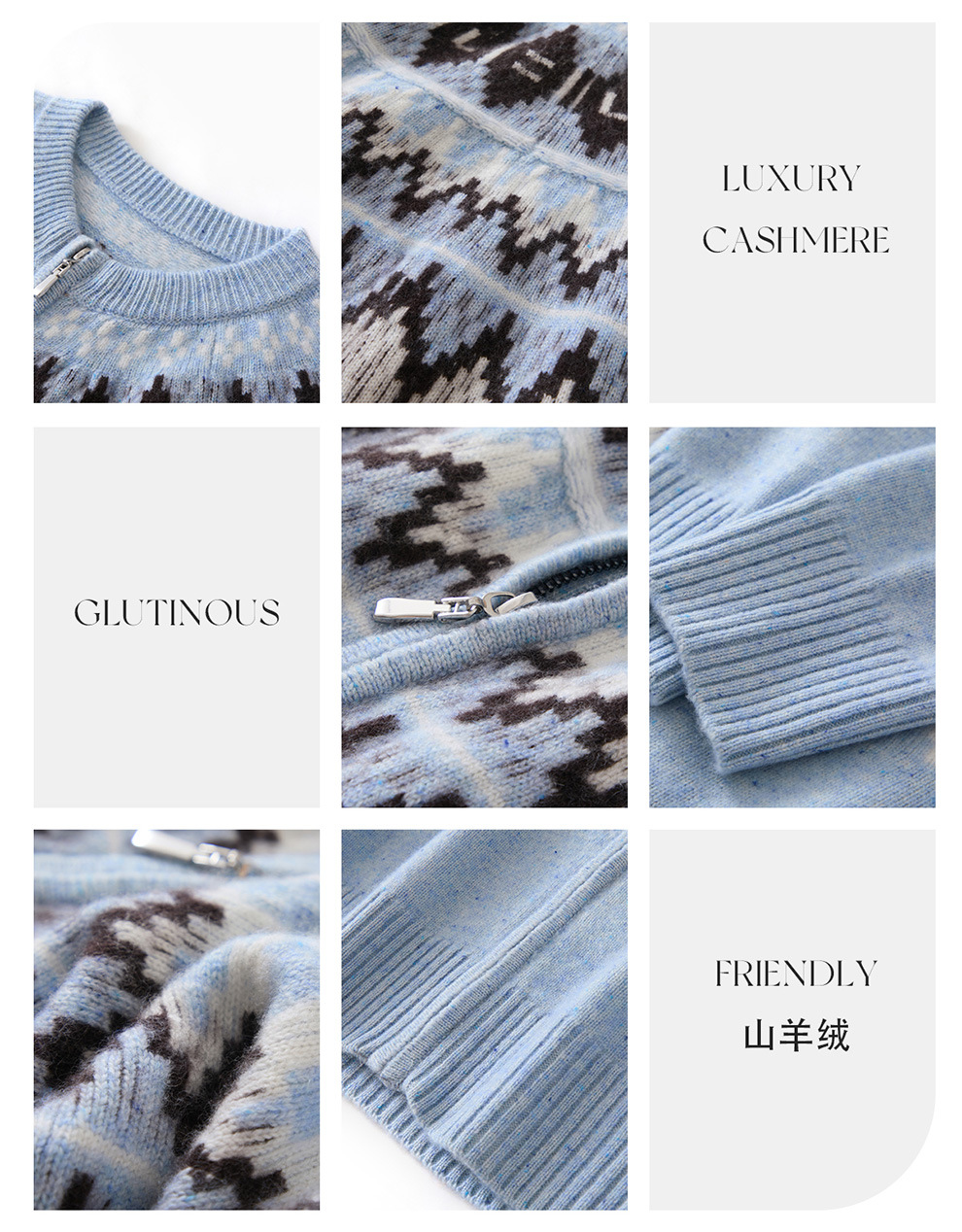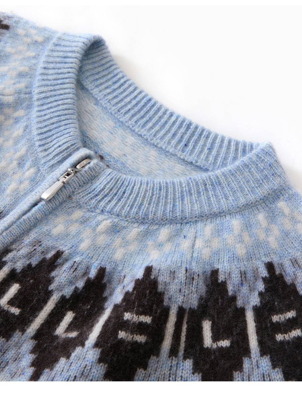 加厚款山羊绒开衫女2025秋冬费尔岛风提花拉链针织衫毛衣外套上衣