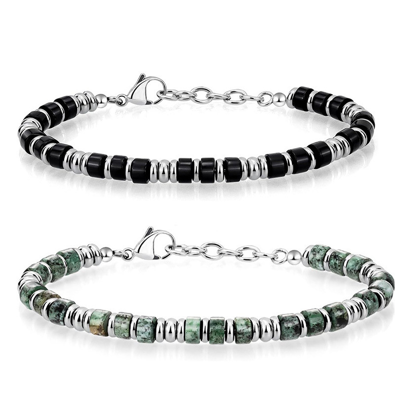 天然石弯管手链黑胆石蓝松石不锈钢刻字手链黑胆石弯管刻字手链