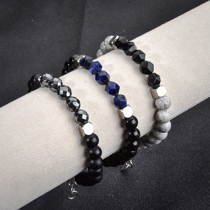 颜色 黑曜石黄虎眼切面珠手链,黑曜石蓝虎眼切面珠手链,地图石黑曜石切面珠手链,黑磨砂磁石切面珠手链