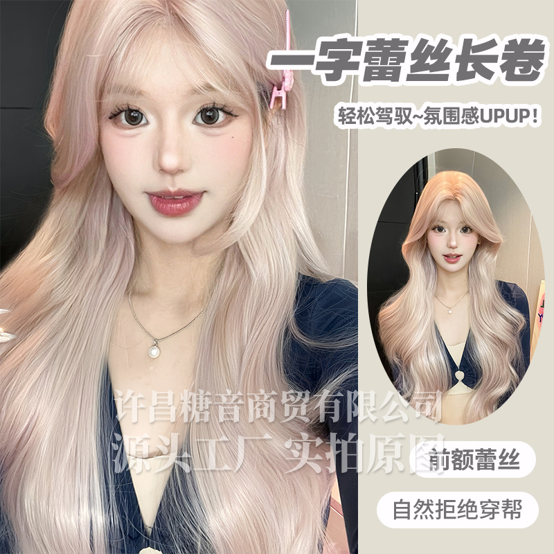 砂糖の音のかつらの女性の日常のネットの赤い長い巻きの髪の夏の新型の自然で甘い1字のレースの全頭カバーのかつら