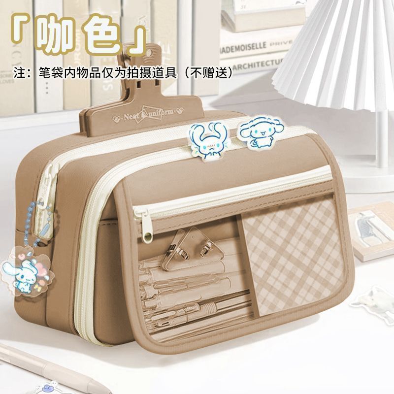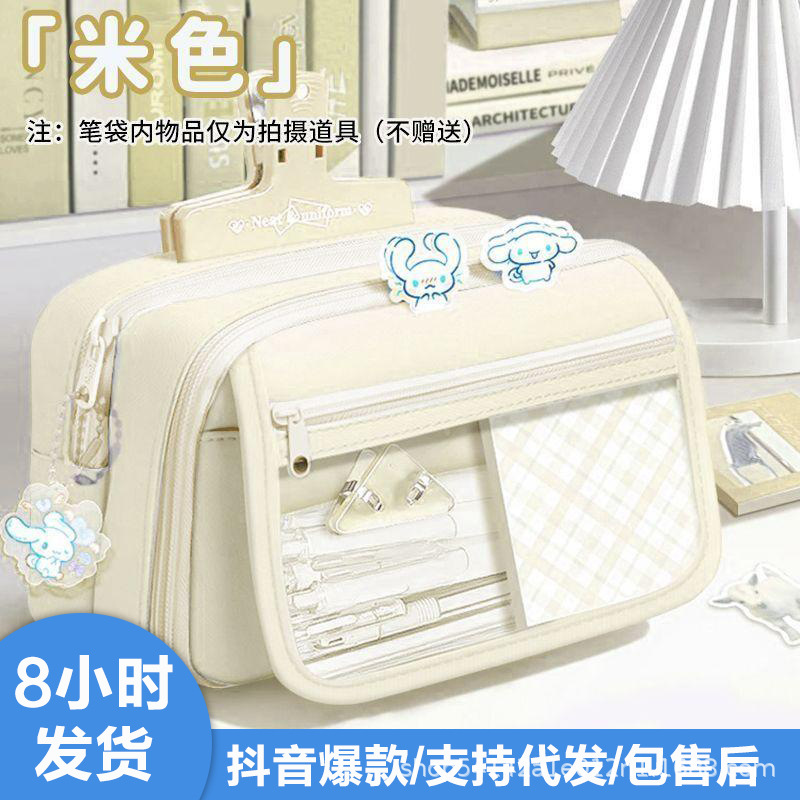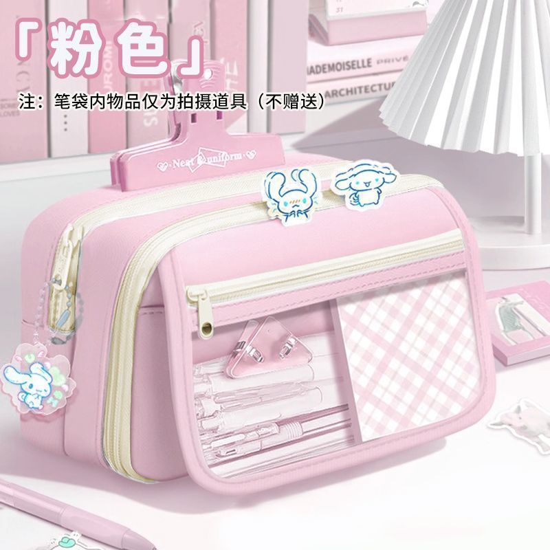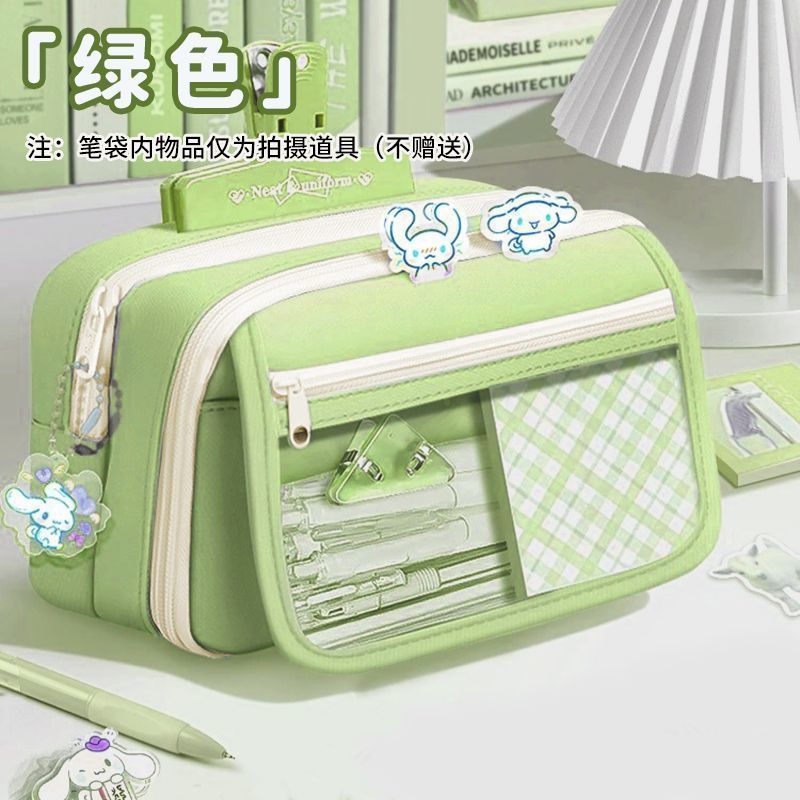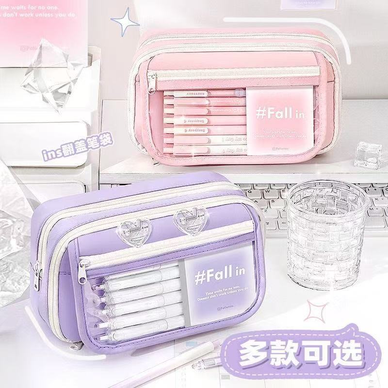 前に窓を開けた筆袋の新型シンプルな多層少女純色小中学生ins大容量文房具ケース収納袋
