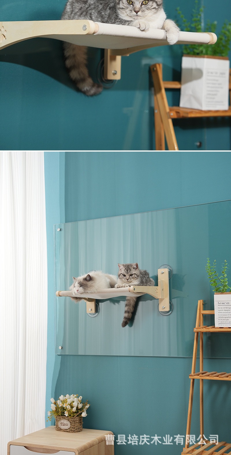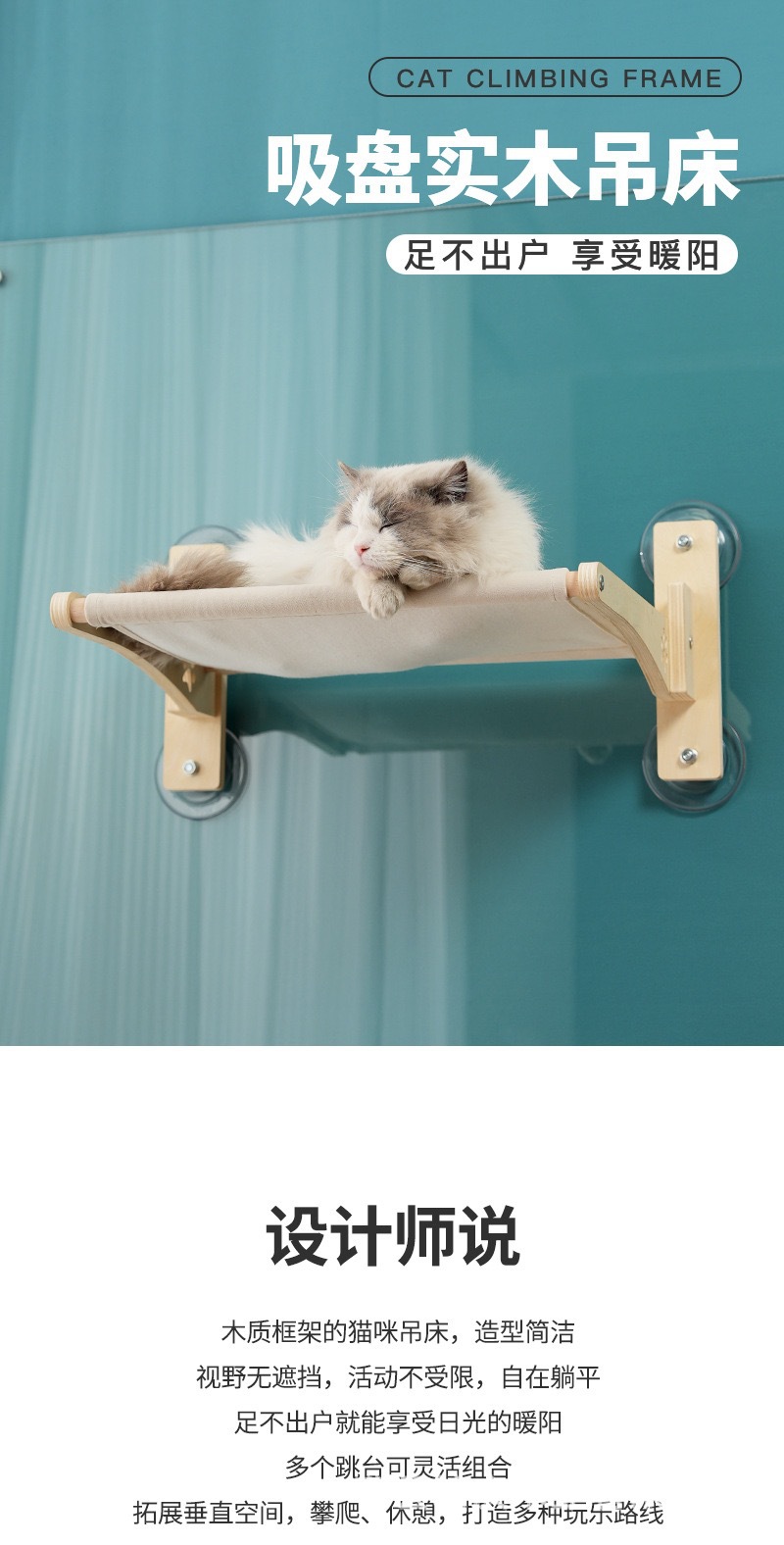 厂家销售窗边悬挂猫爬架家居阳台窗户猫咪吸盘吊床实木床边挂猫窝
