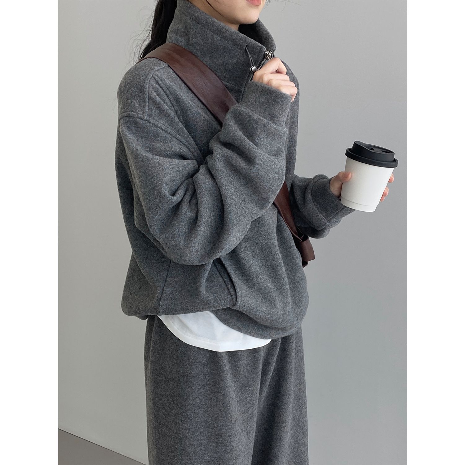 那末日常懒人套装~韩系加绒卫衣套装立领外套长裤两件套女E7125