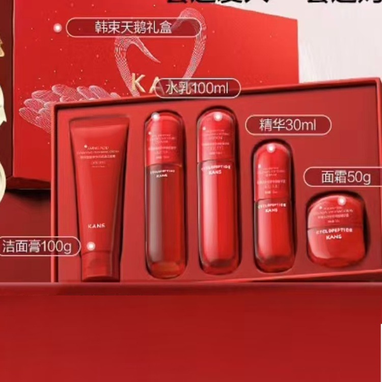 韓州紅曼腰多肽コラーゲンギフトボックス洗顔料、化粧水、クリーム、エッセンス5点セット、個包装エッセンス