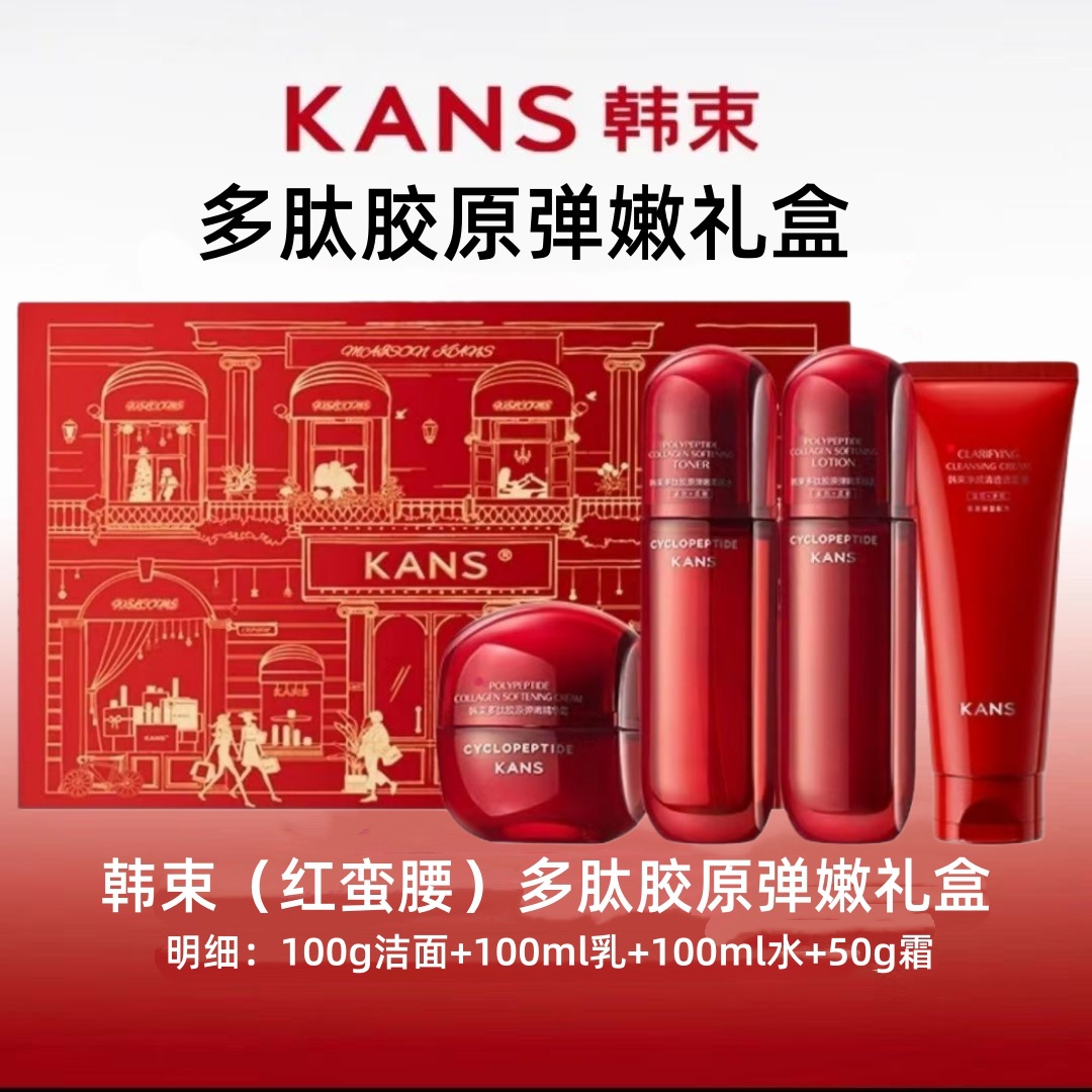 韩.束红蛮腰4件套多肽胶原弹嫩礼盒水乳霜洁面套盒保湿紧致抗皱