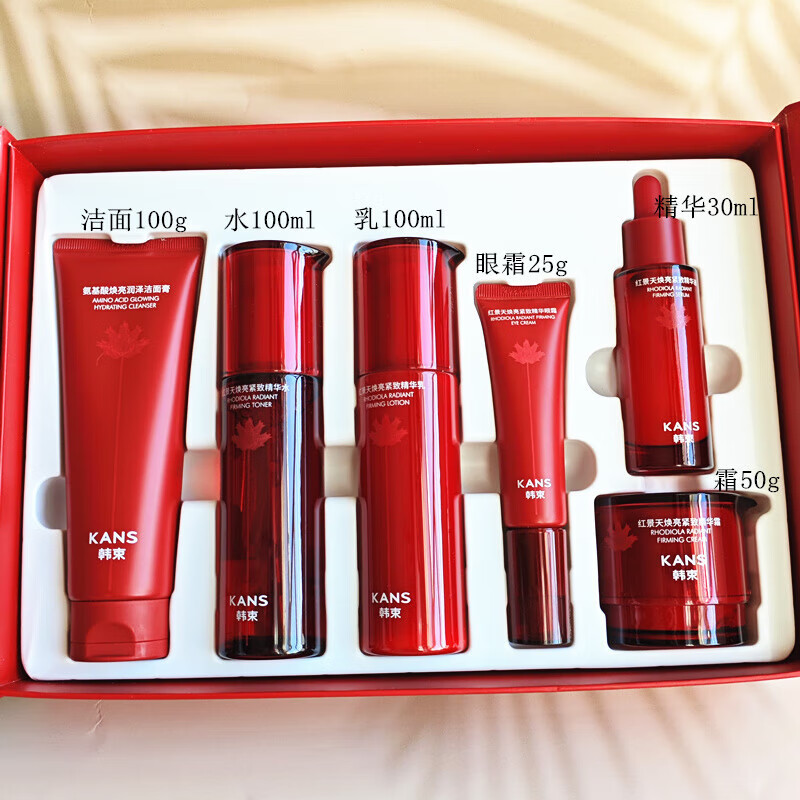 韩束红景天焕亮紧致奢享礼盒保湿紧致抗皱护肤六件套水乳霜套组
