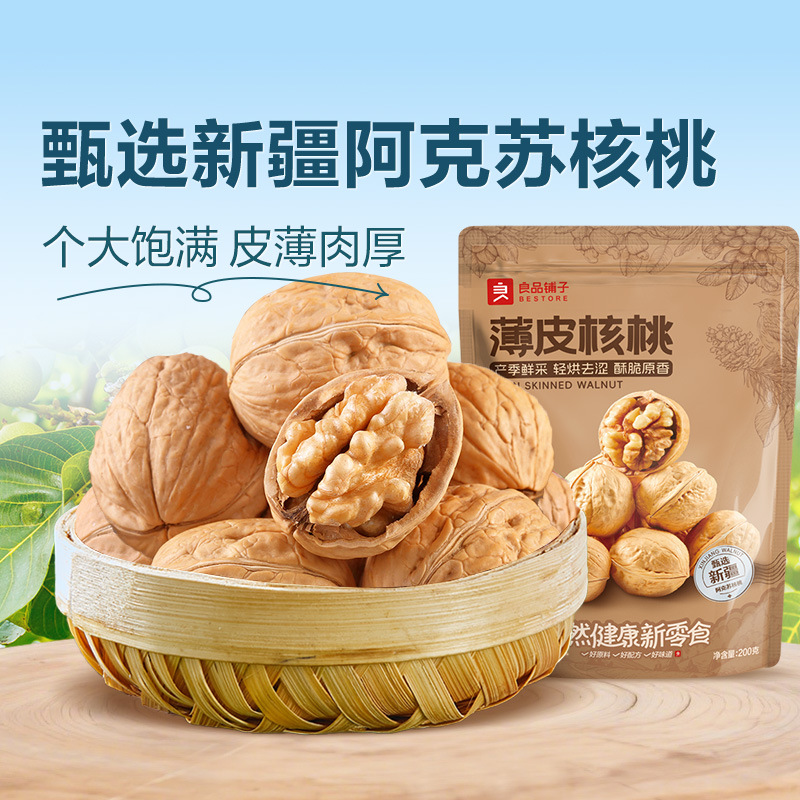 良品铺子薄皮核桃200g/袋原味坚果孕妇零食新疆纸皮核桃手剥核桃