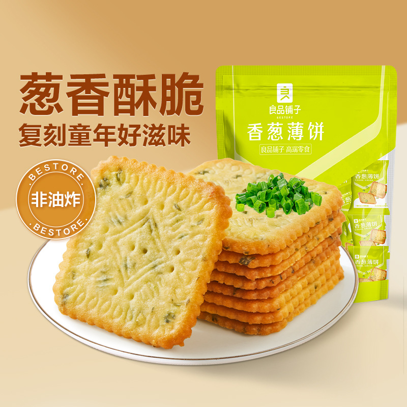 良品铺子香葱薄饼300g/袋薄脆饼干香葱味独立包装咸甜酥性零食