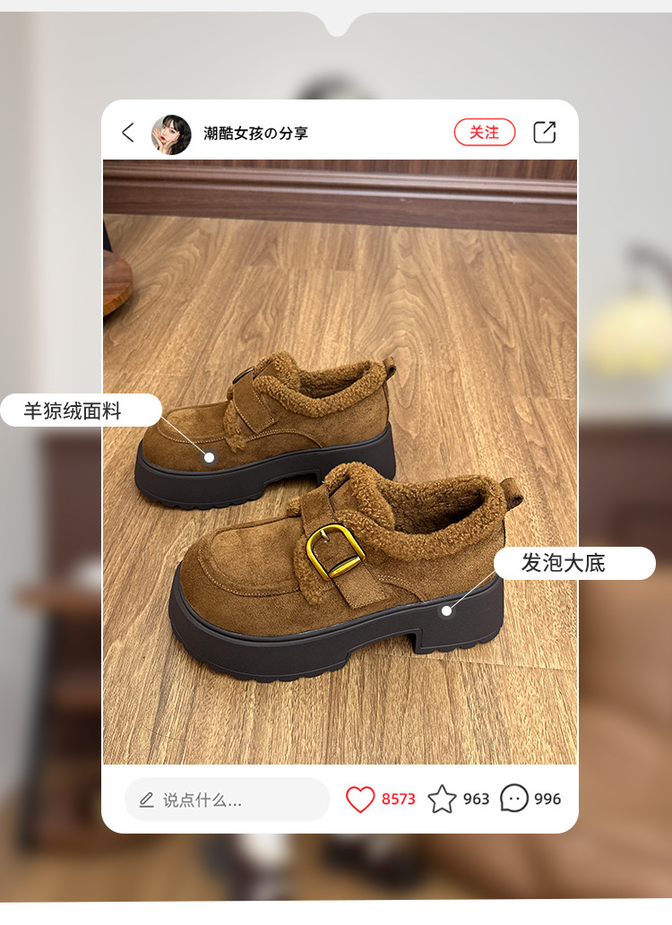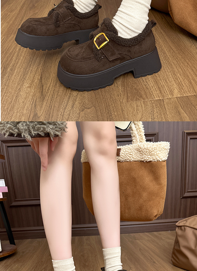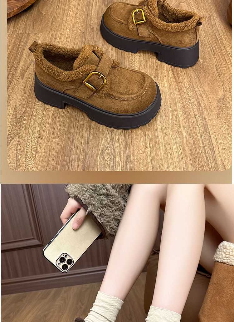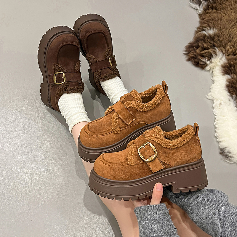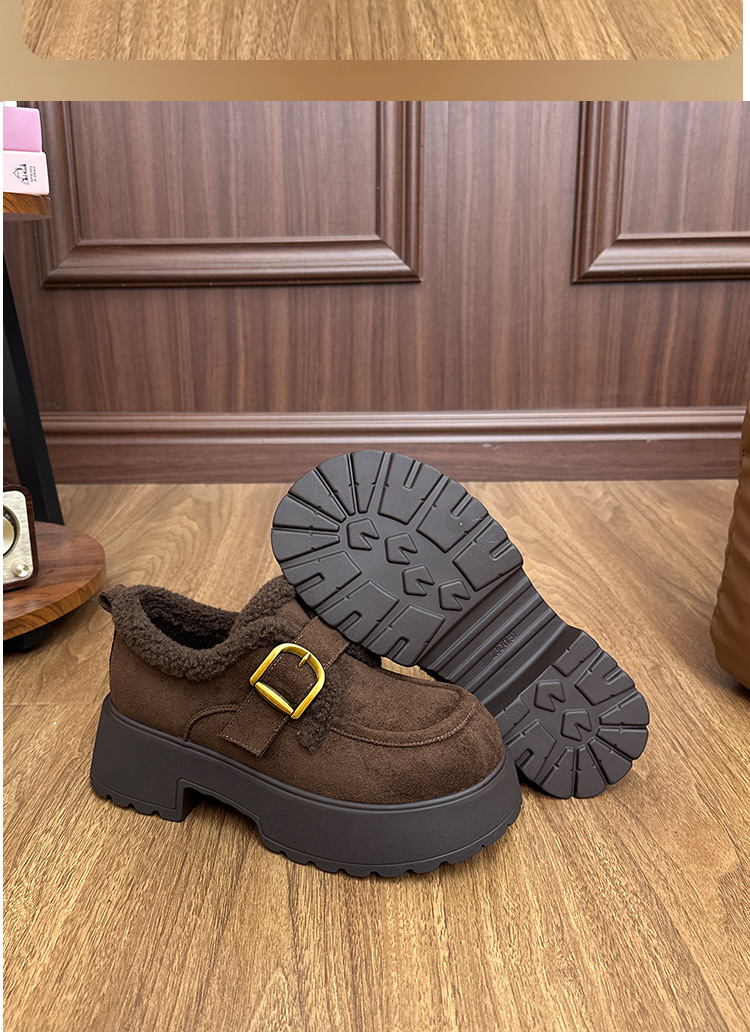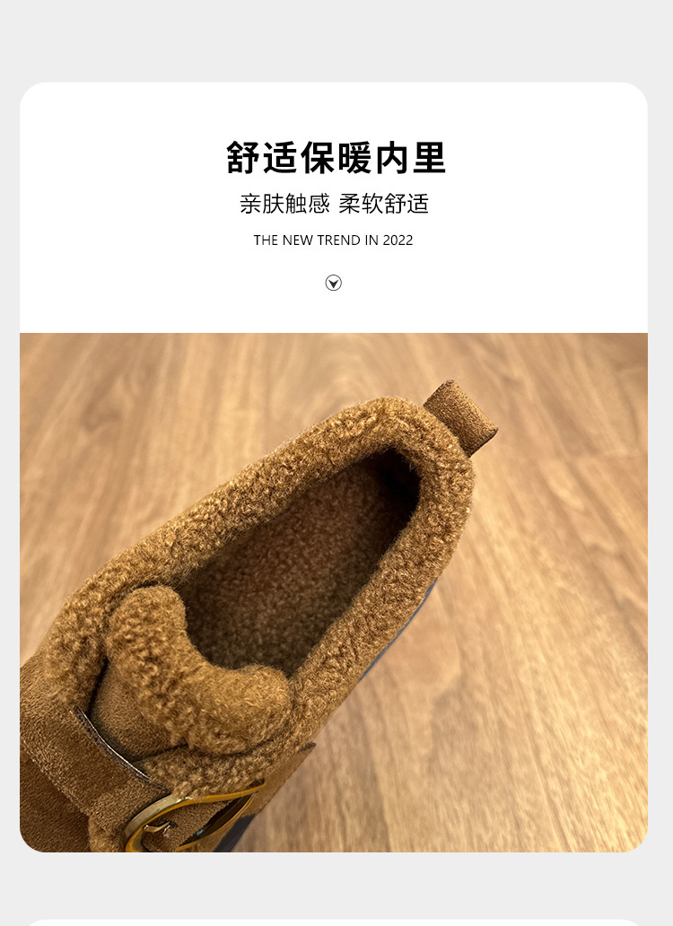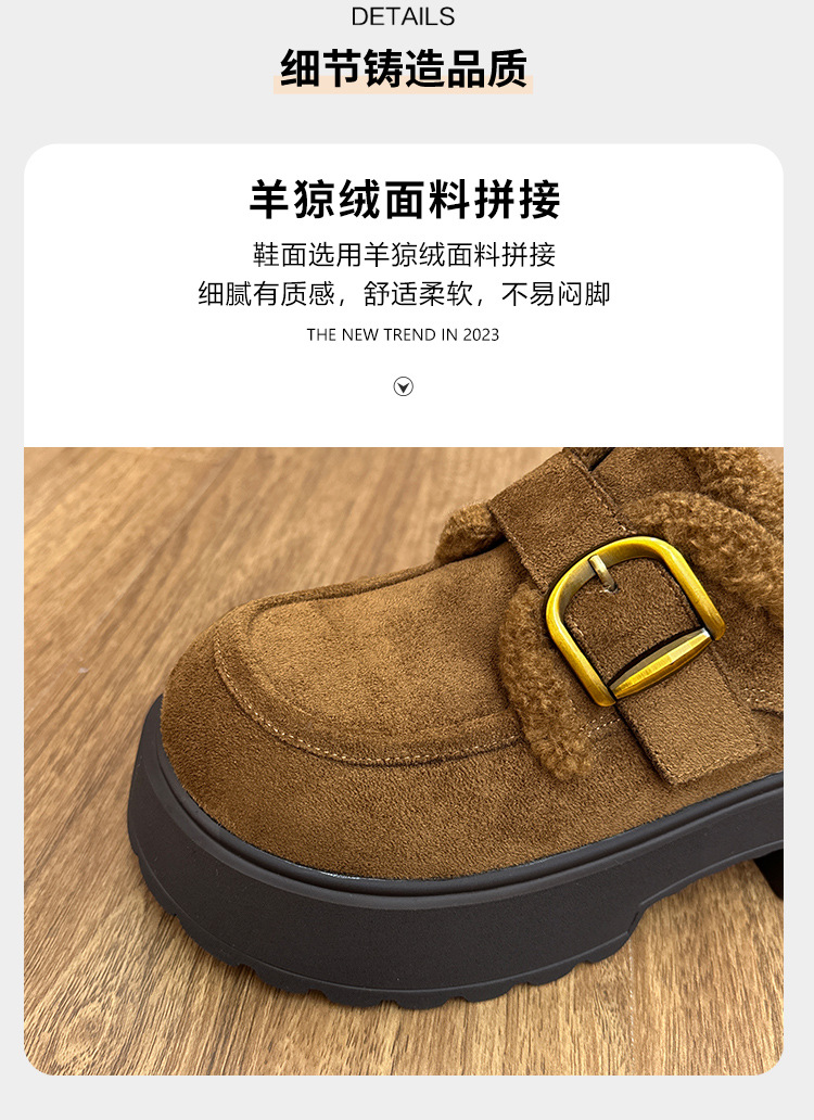 2025秋冬新款英伦风羊羔毛舒适时尚百搭加绒保暖皮带双扣软底乐福