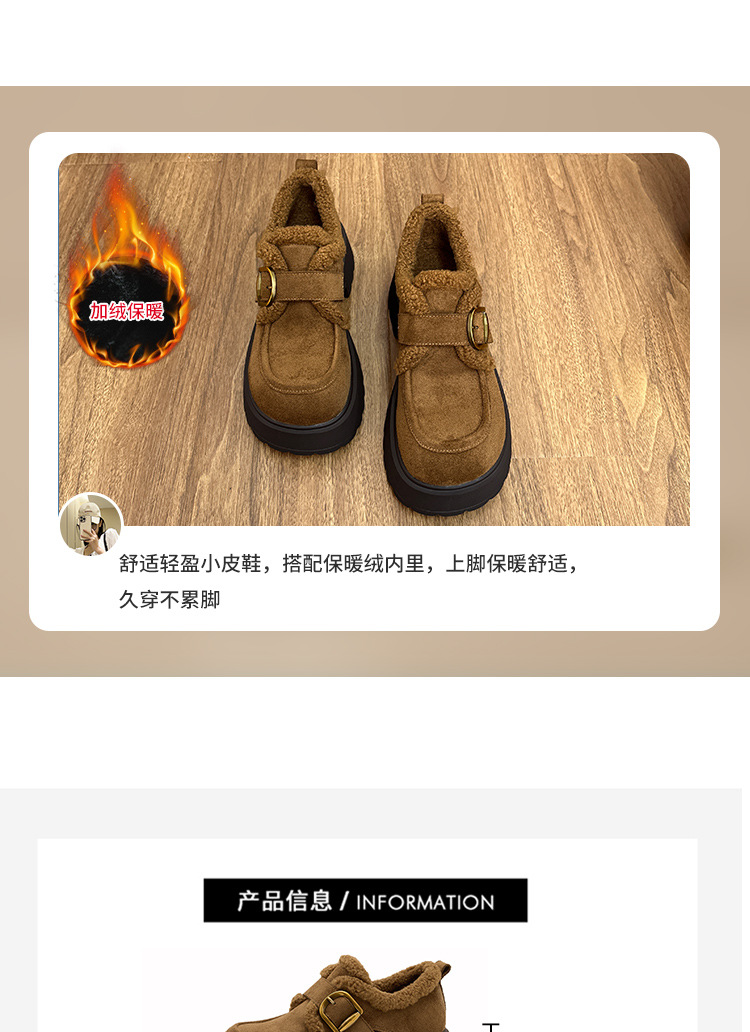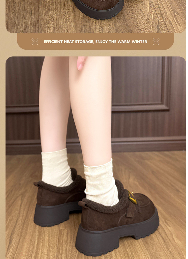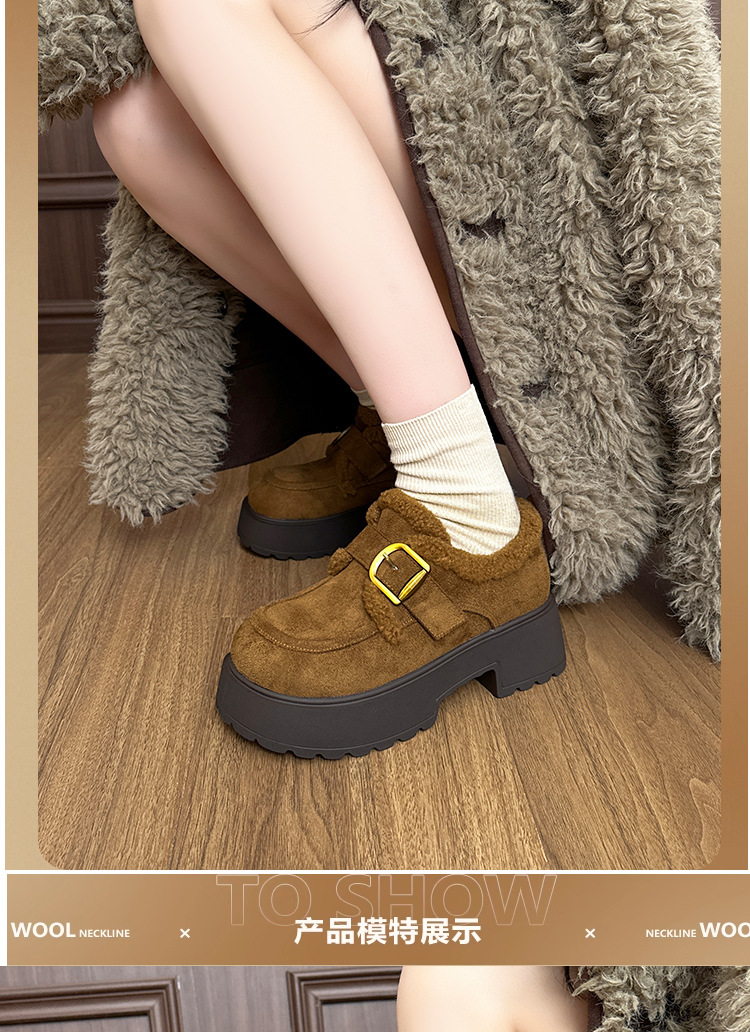 2025秋冬新款厚底增高粗跟加绒保暖乐福鞋时尚百搭毛毛鞋小皮鞋