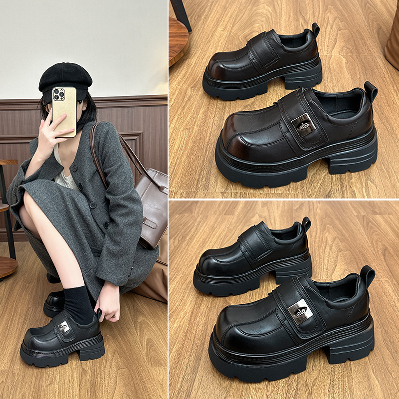 2026春季新款厚底增高粗跟英伦魔术贴方扣百搭超轻圆头韩系乐福鞋