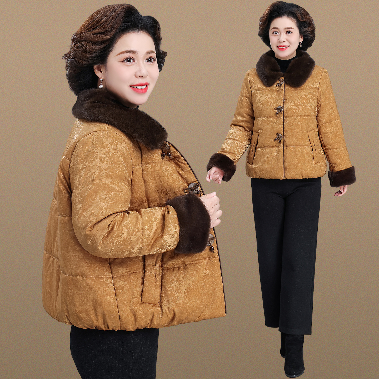 2025中年妈妈冬装新款中老年保暖棉服外套新款国风加绒加厚棉衣女