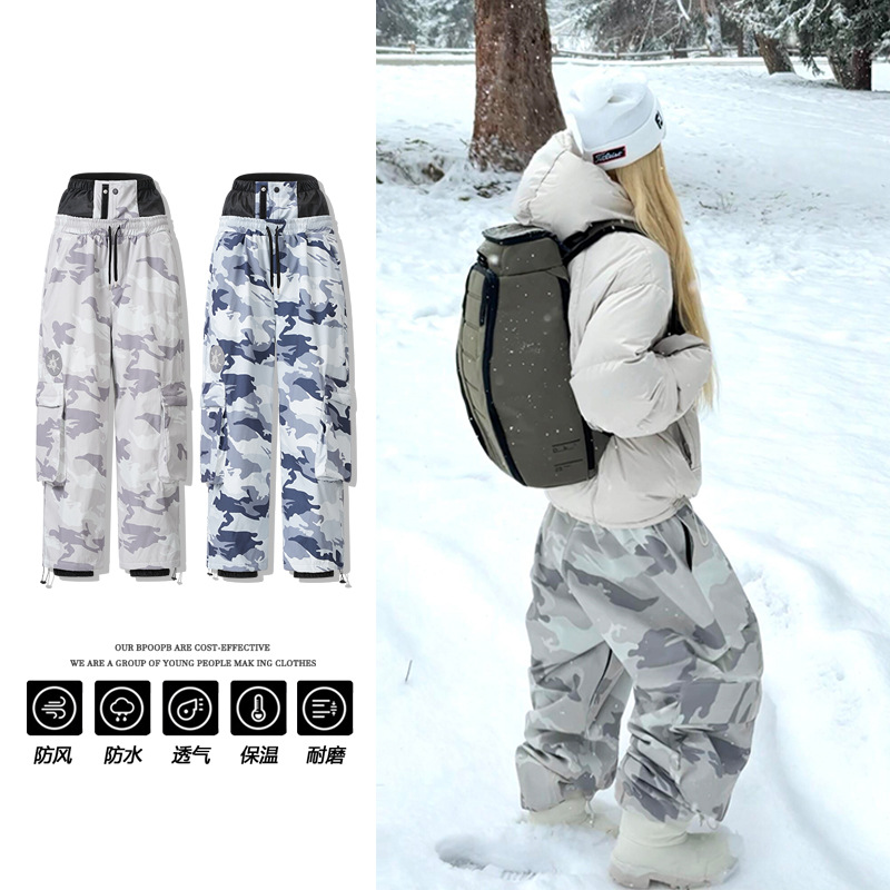 氷度アメリカレトロ単板防水拡幅スキーズボン男女カップル防水防風耐摩耗保温ズボン
