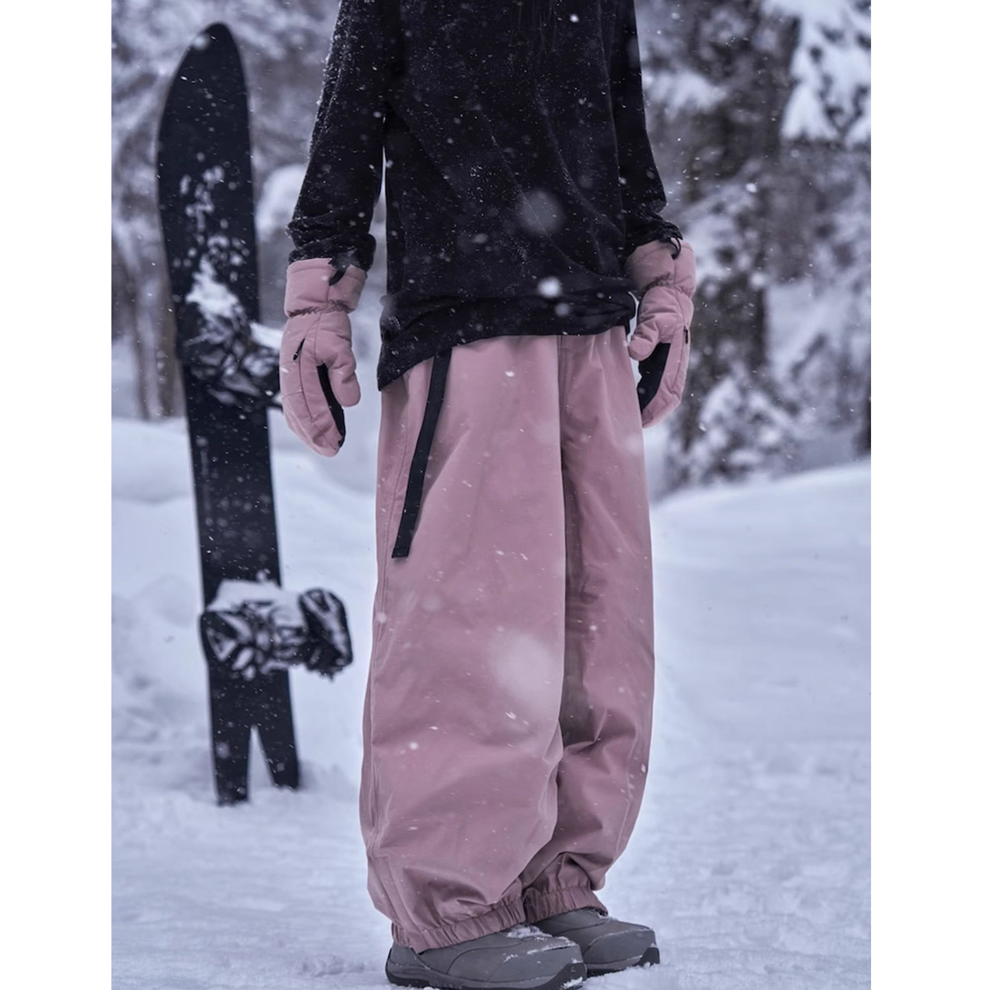 加绒滑雪裤女款男士防风户外简约束脚单板宽松防水防寒滑雪服裤