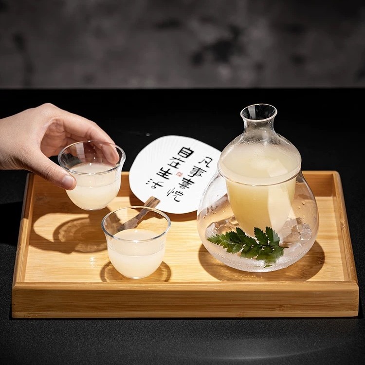 日本の槌目酒ポットガラスワインウォーマーセット家庭用ウォームワインホットワインポット白ワインカップアイスワインセット装飾品
