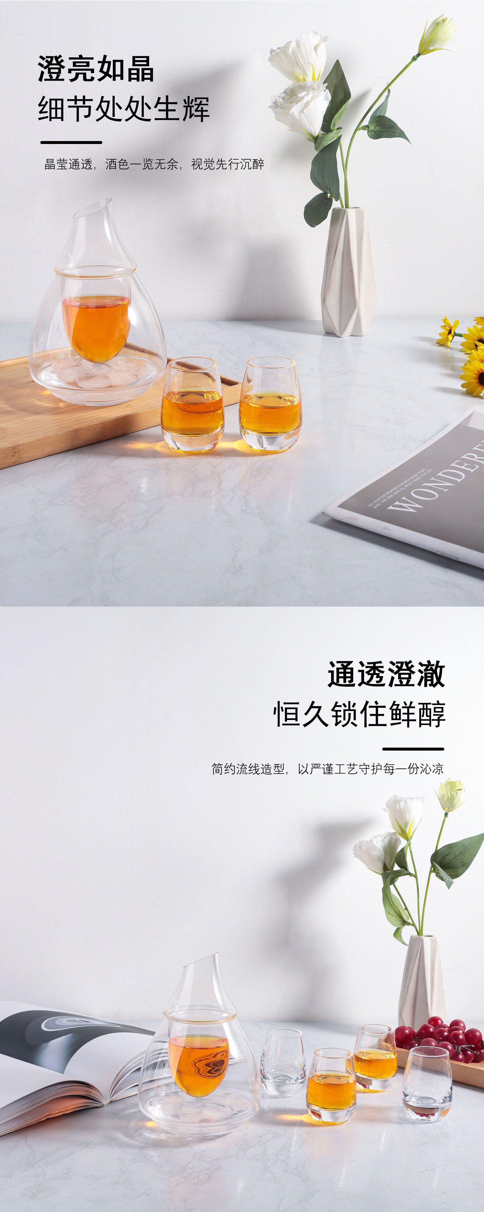 ライト高級日本クリエイティブ酒ポットセットクリスタルガラス分離ワインディバイダー日本食品店ホーム酒アイスワインポット