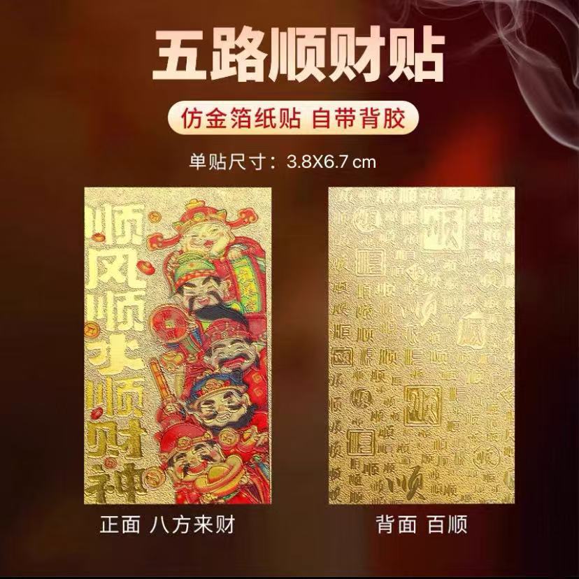 2025新款五路财神顺风顺水顺财神手机贴仿金箔新年贺岁开门红礼品
