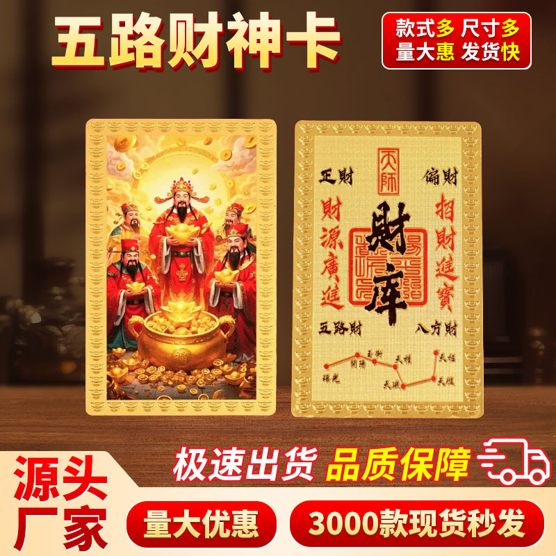新款五路财神金卡随身手机贴仿金箔赵公明财库卡钱包招财卡片