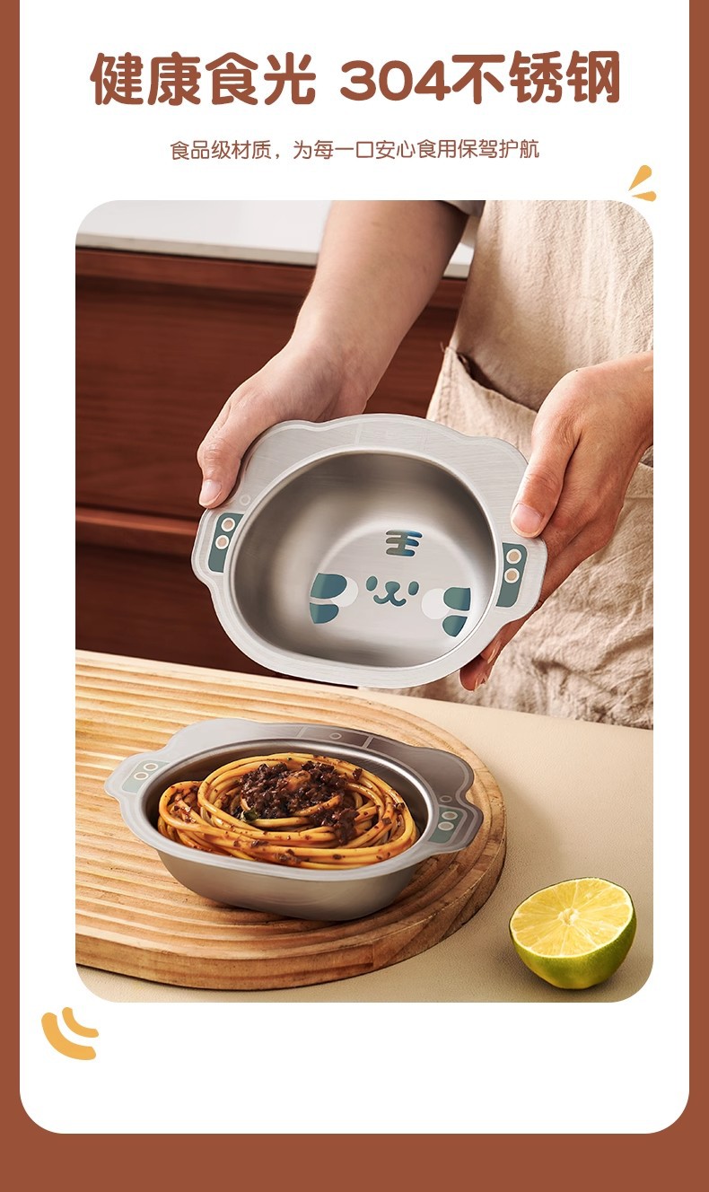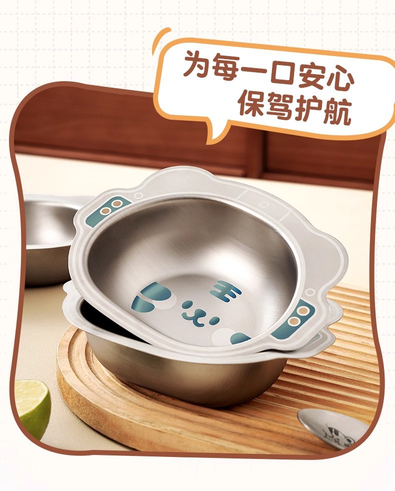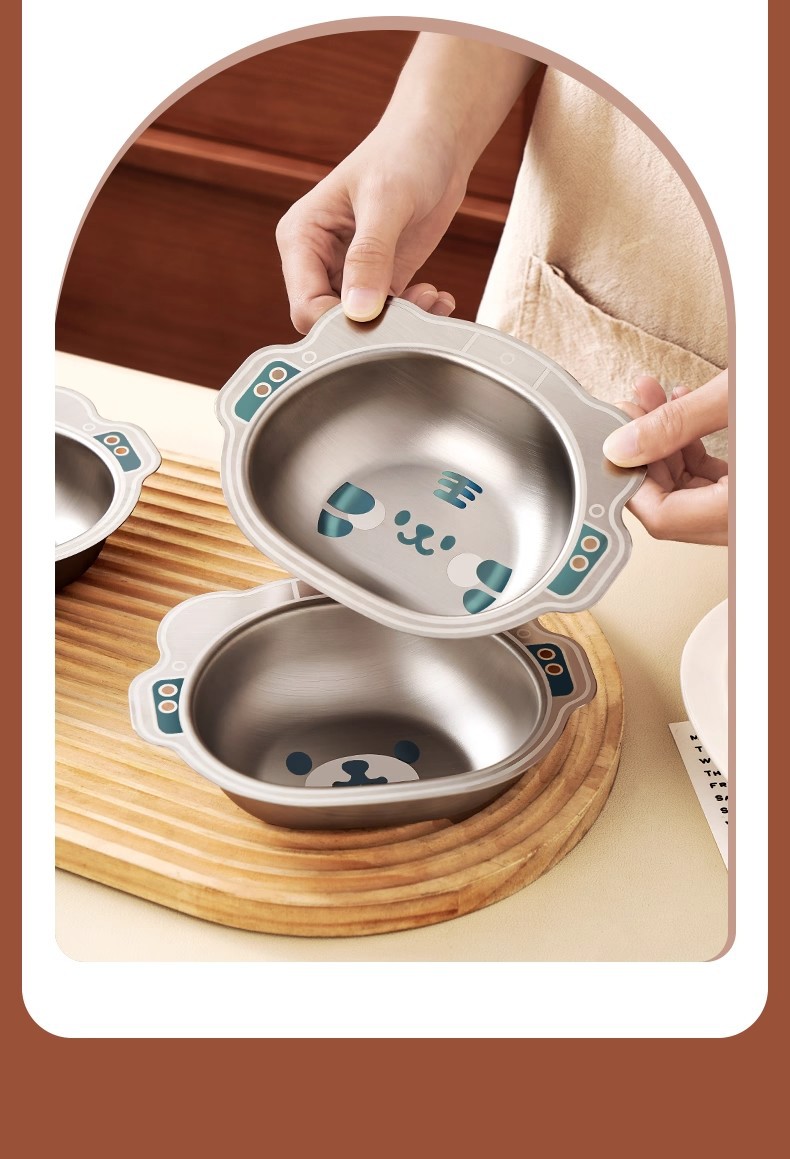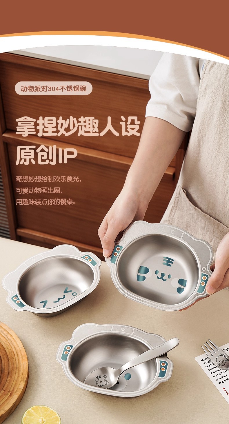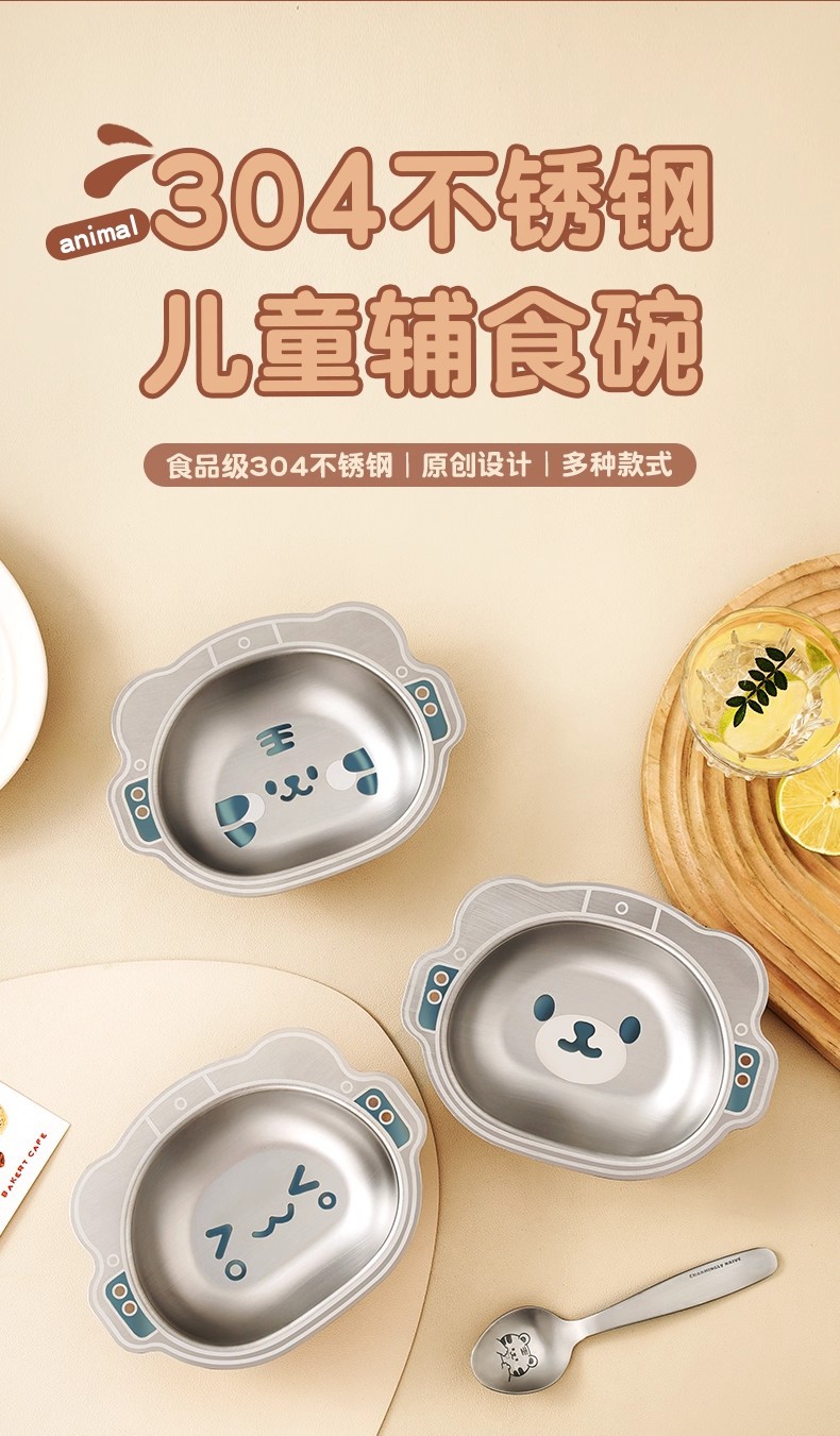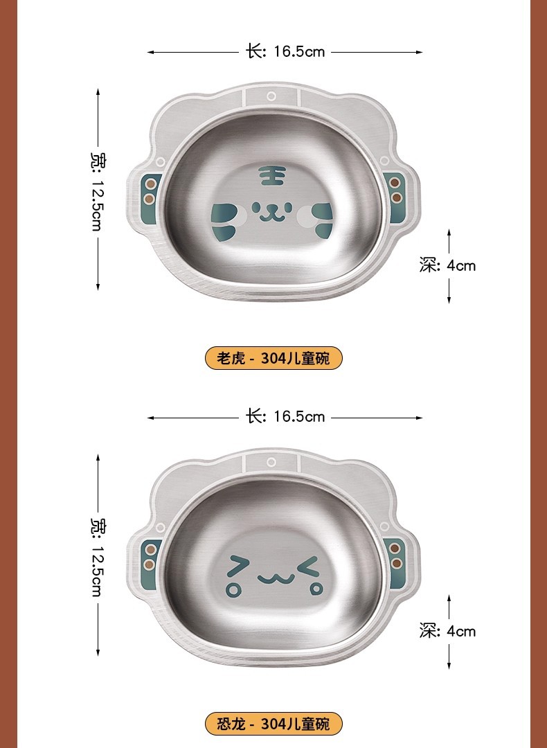 儿童自主进食可爱饭碗304不锈钢宝宝辅食吃饭专用吸盘防摔小碗