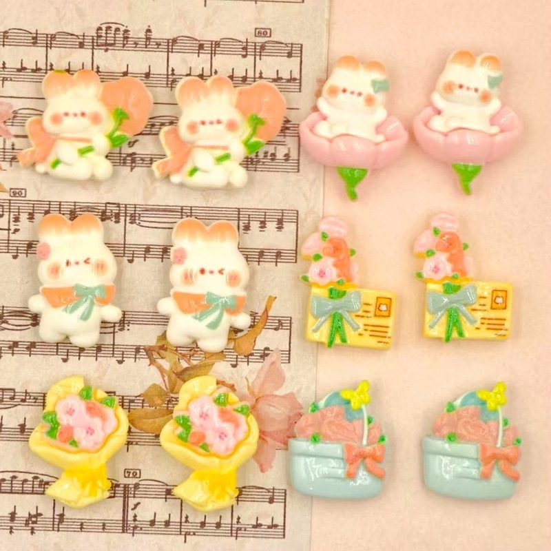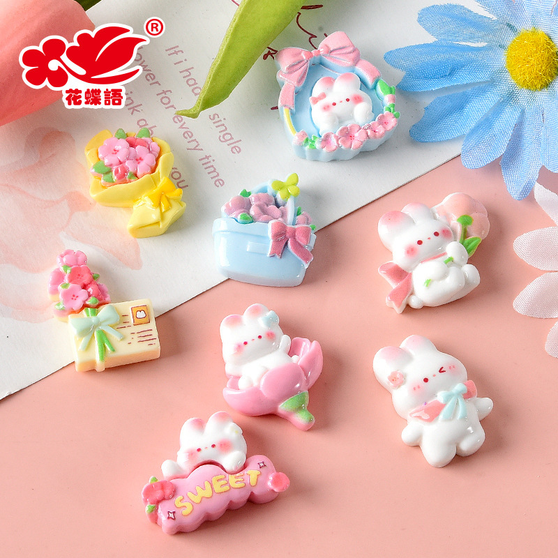 可爱兔子卡通花束手工diy饰品配件奶油胶树脂小配件洞洞鞋扣材料