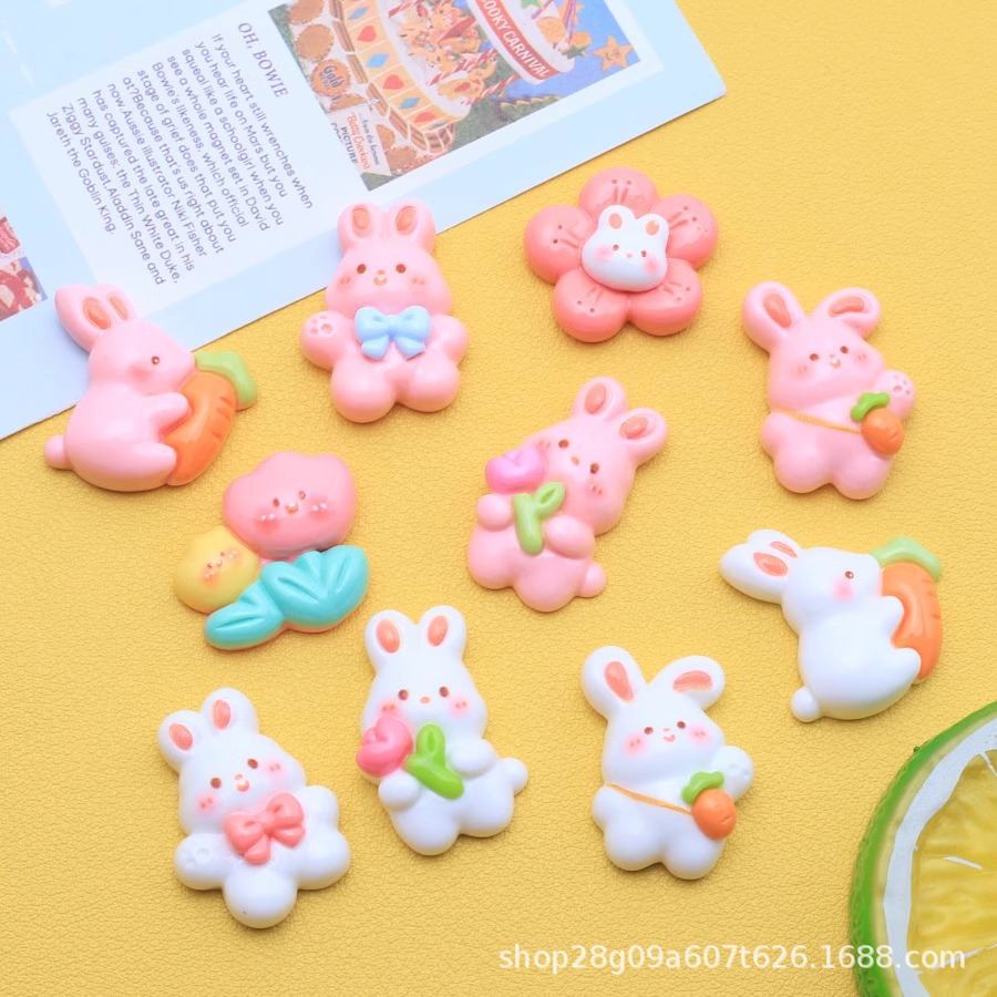 树脂配件可爱兔子花diy饰品奶油胶手机壳冰箱贴头绳发夹水杯配件