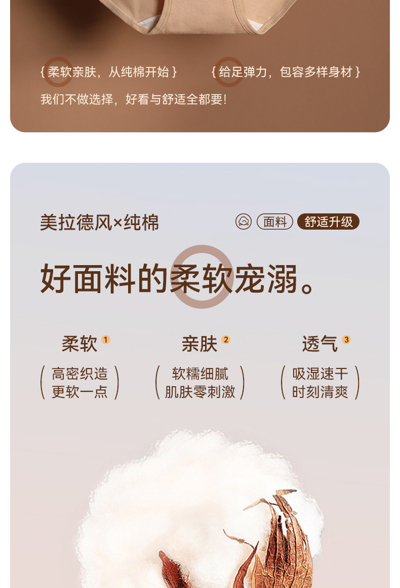 女士精梳亲肤中腰三角内裤无痕透气欧美运动风美拉德工厂一件代发