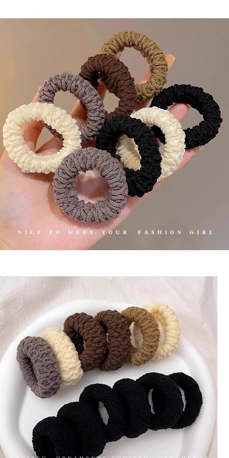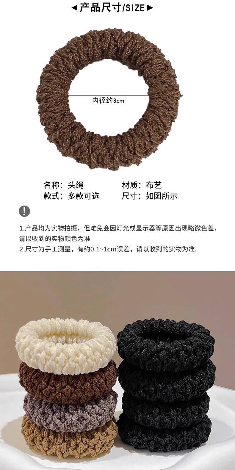 加厚加粗高弹力头绳毛巾圈爆米花彩色无接缝发圈马尾头绳发绳发饰