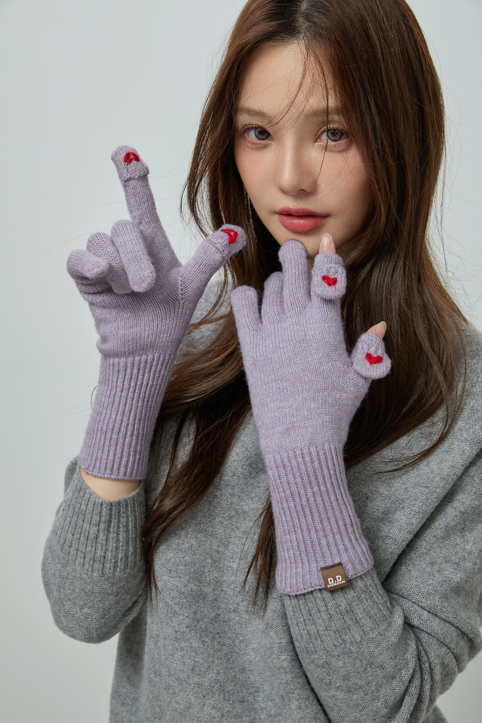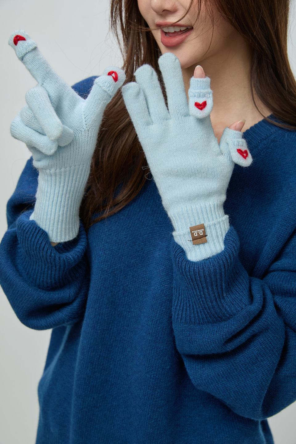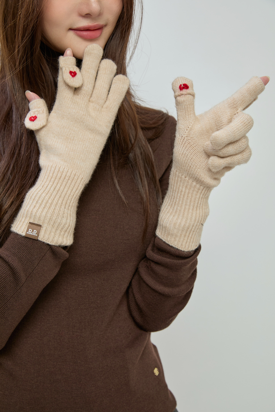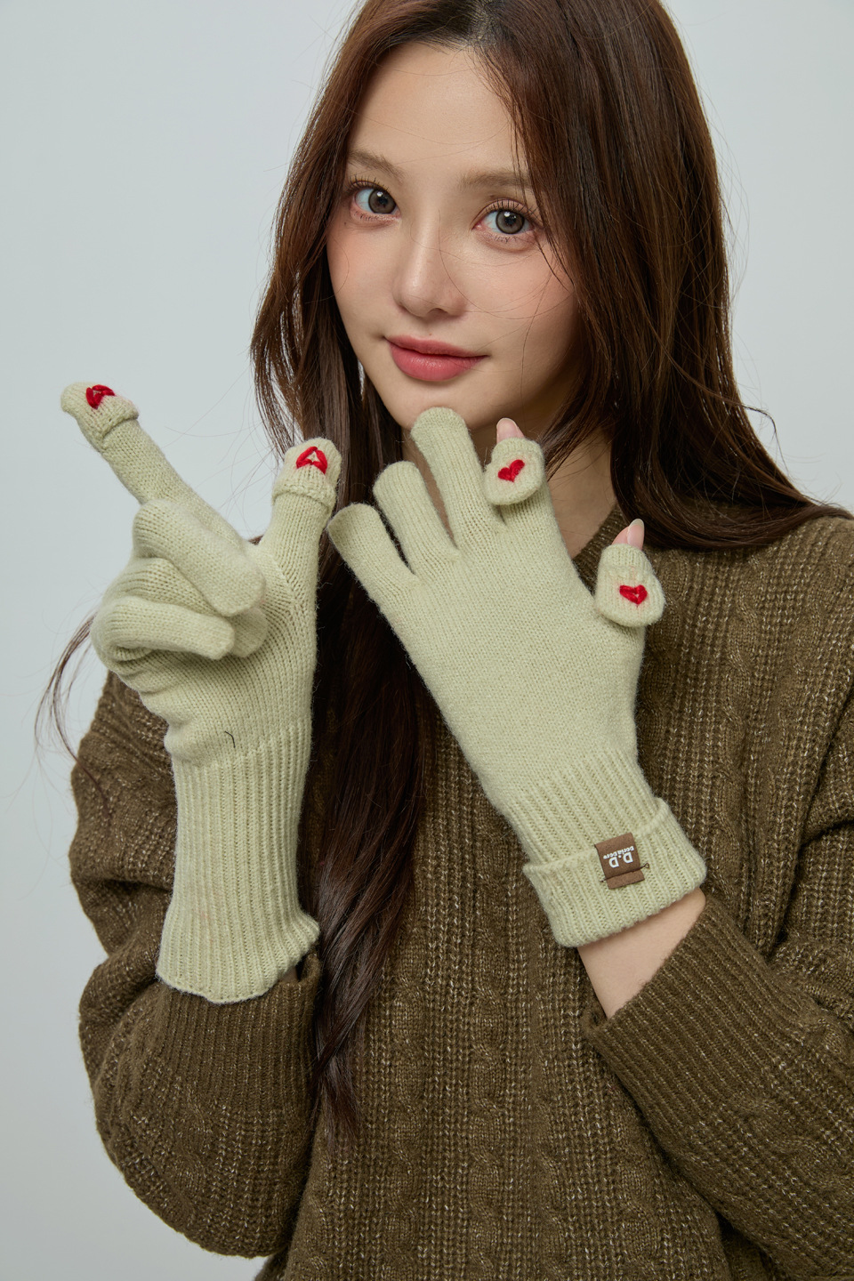 2024秋冬ウールニット愛刺繍手袋女性毛糸露指タッチパネル保温自転車学生防寒
