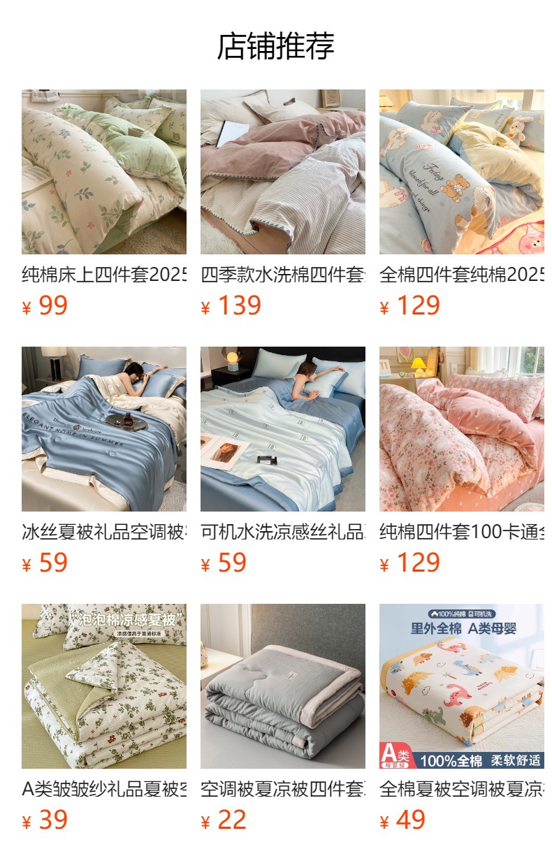 床上用品细分