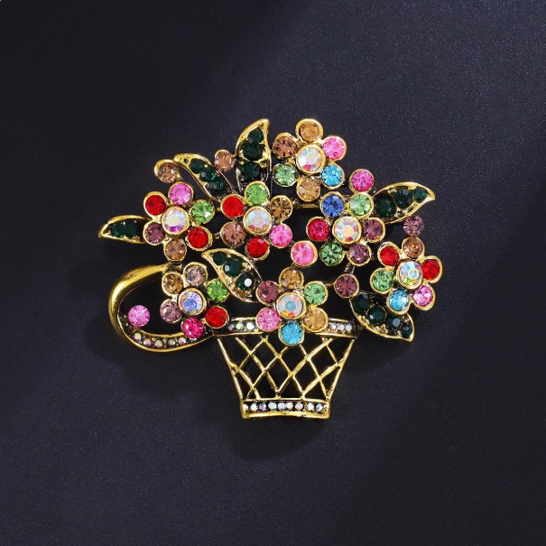 欧美跨境复古花篮胸针精致可爱创意时尚服装外套配饰品胸花别针女