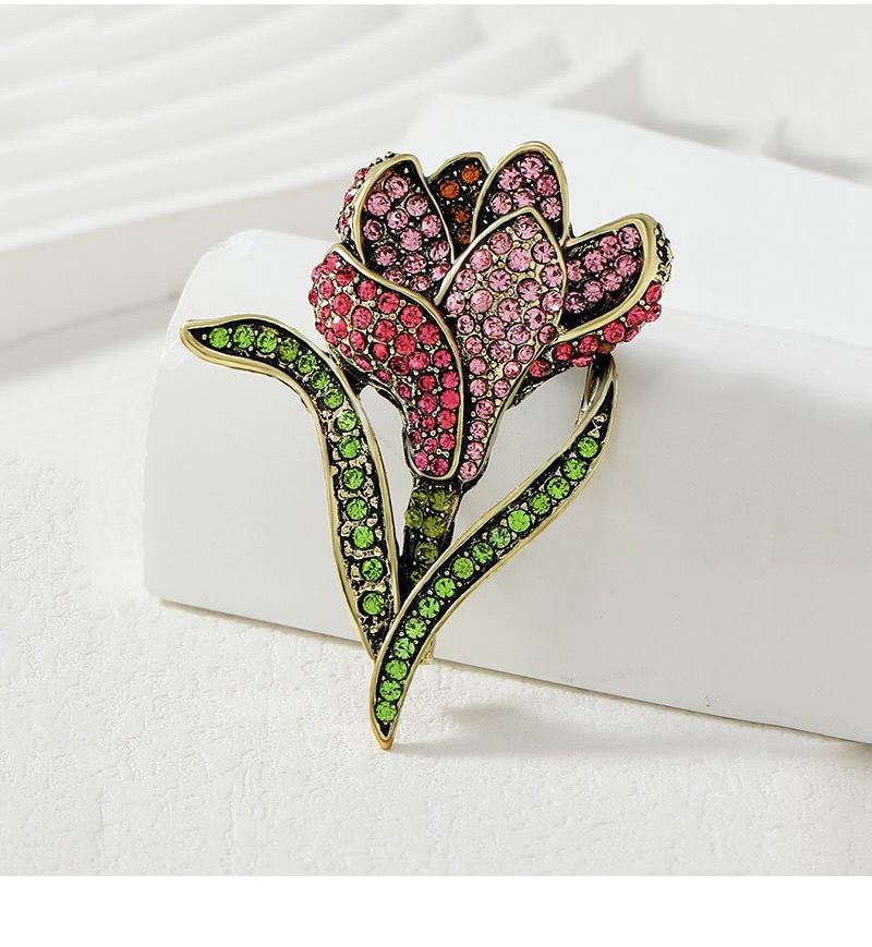 复古郁金香水钻胸针宫廷服装固定胸花女防走光领口别针百搭配饰