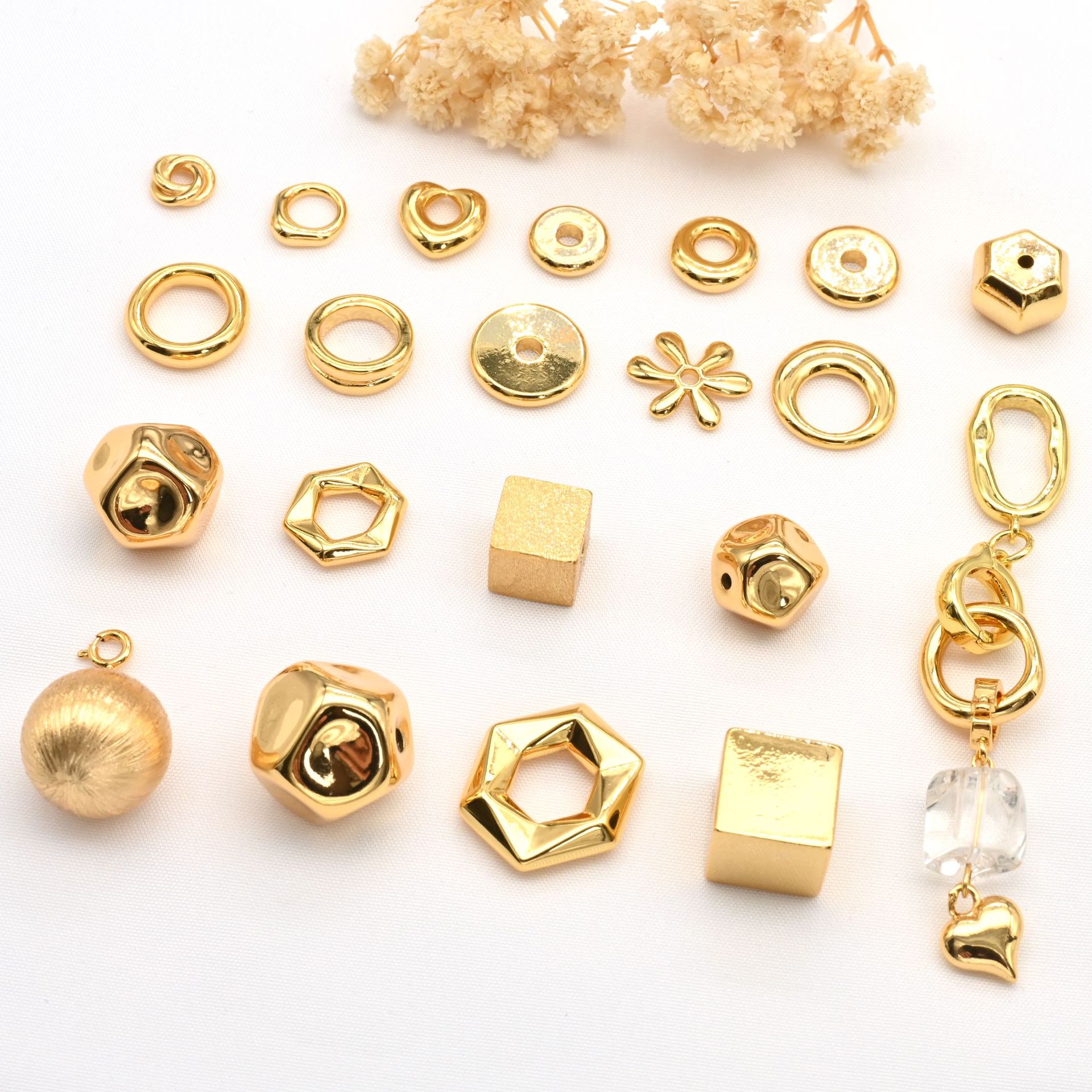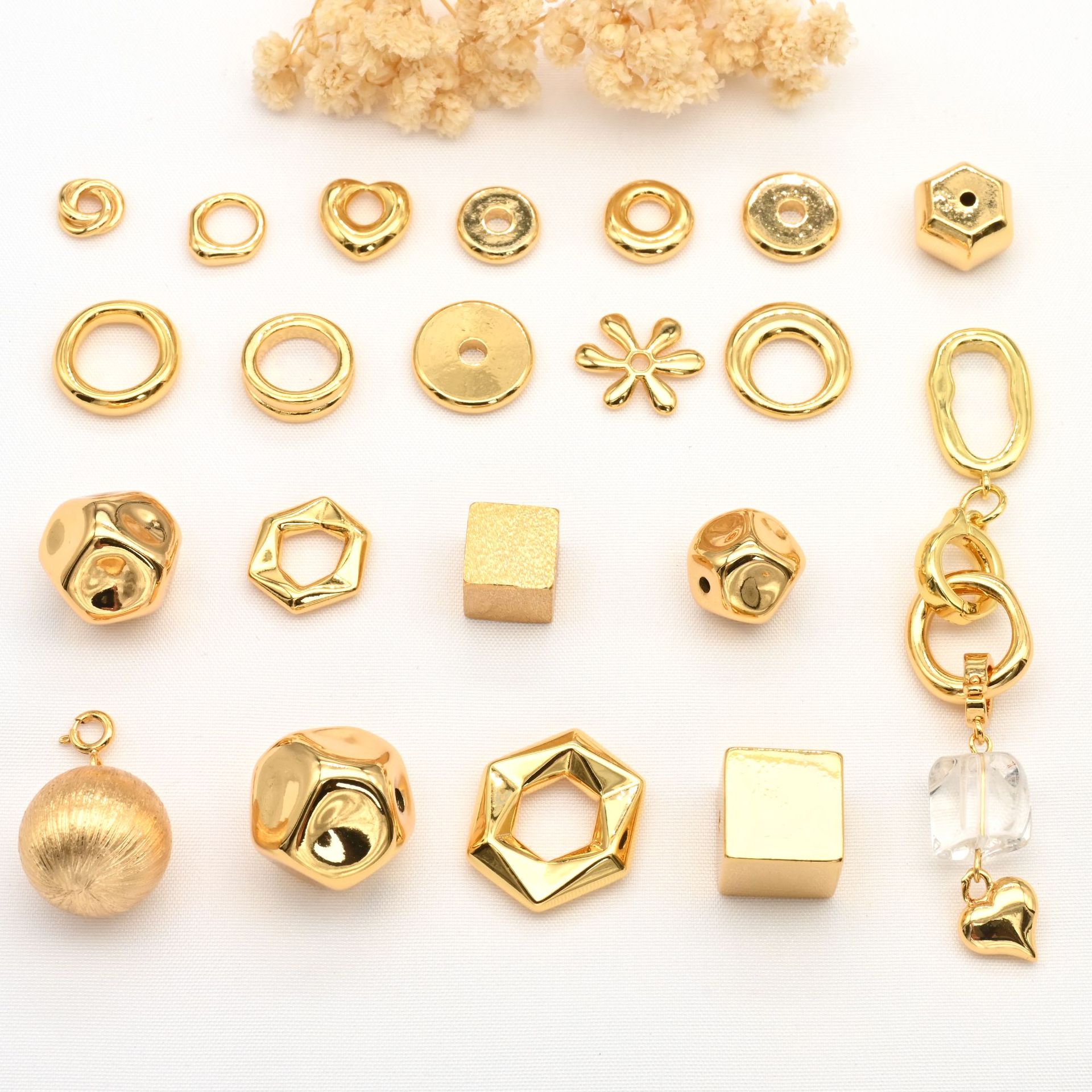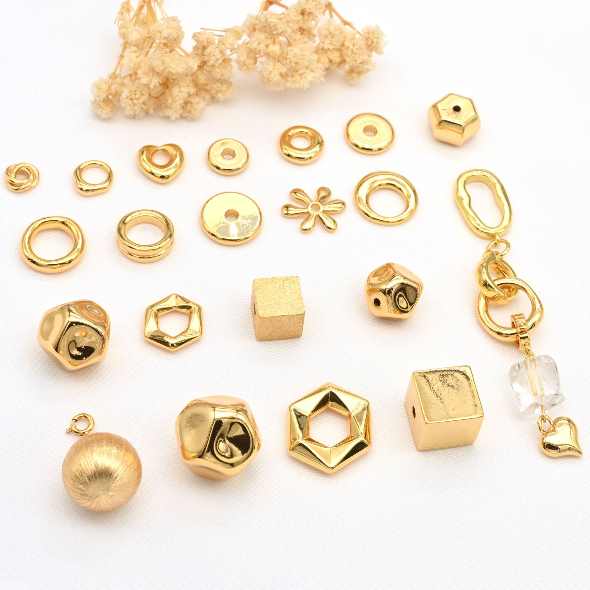 铜镀真金屁桃爱心立体方块空心隔珠转运珠diy水晶手串饰品配件