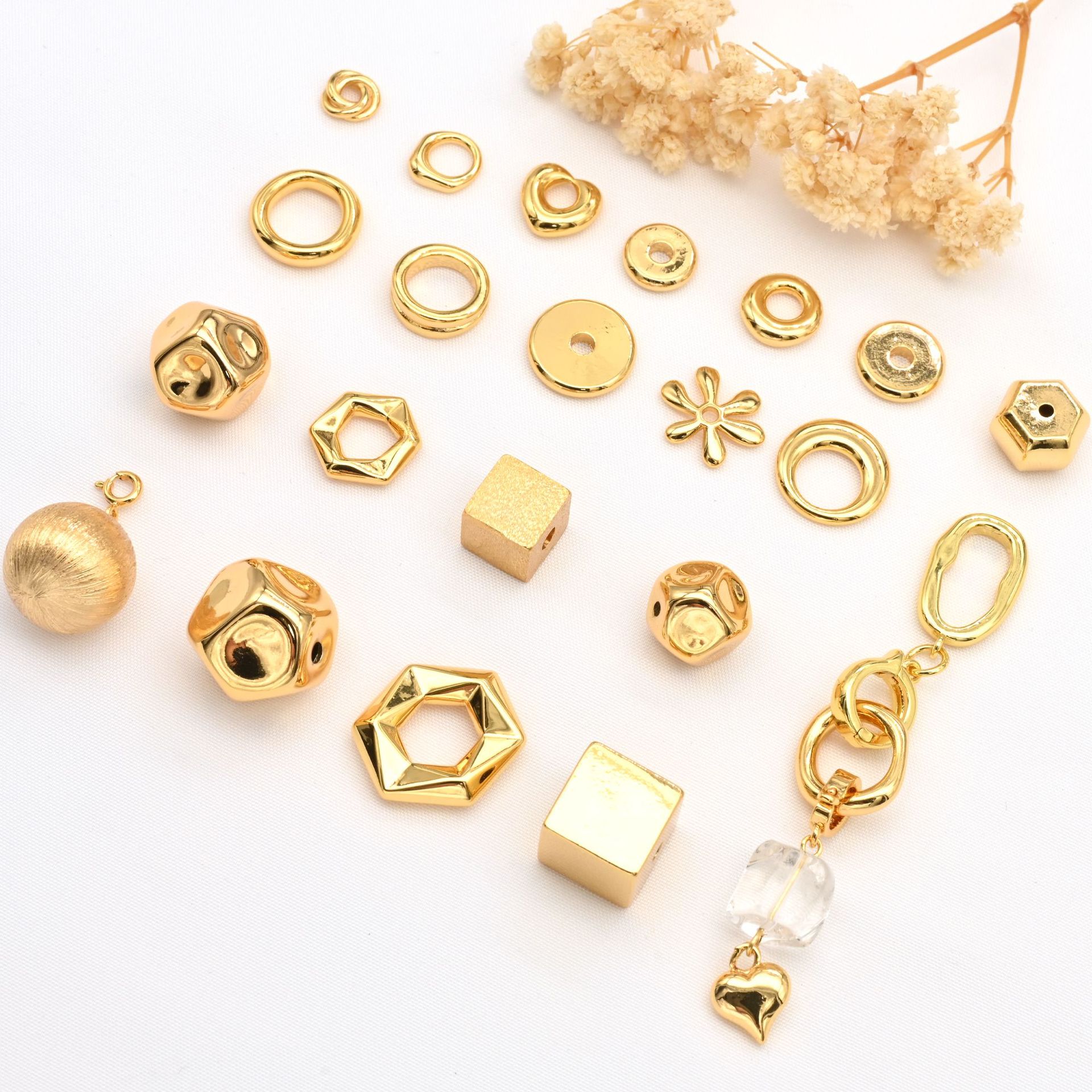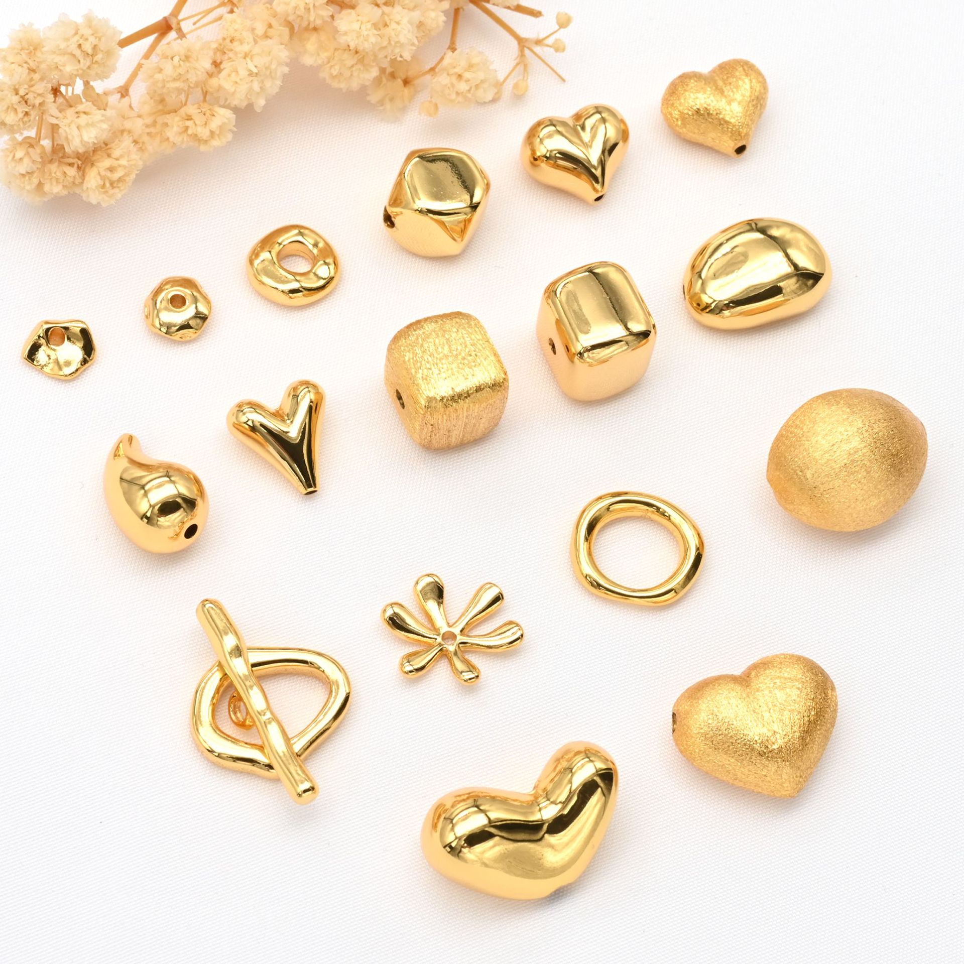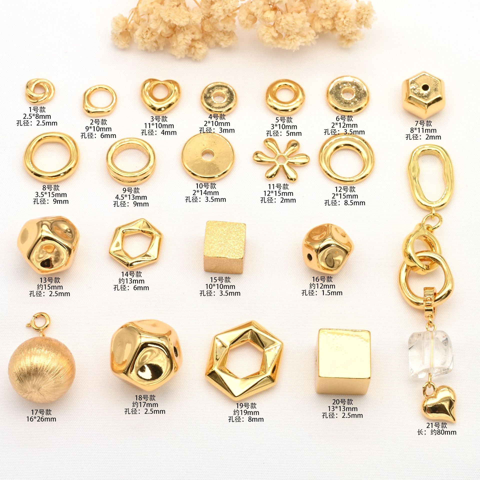 铜镀真金屁桃爱心立体方块空心隔珠转运珠diy水晶手串饰品配件