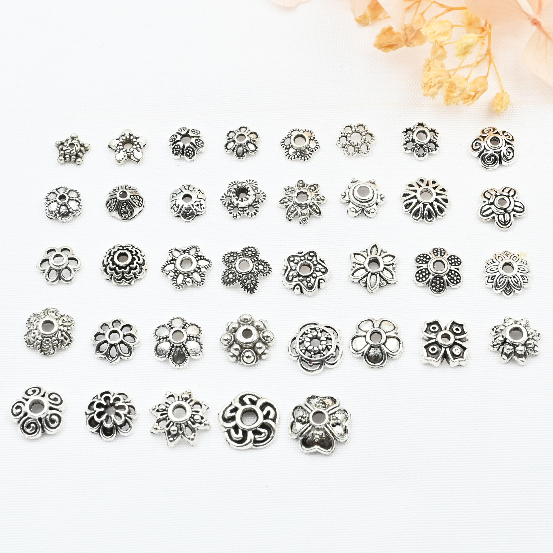 古銀色合金透かし彫り花托隔珠花帽珠托帽子古風diy歩行ヘアピン冠アクセサリー部品
