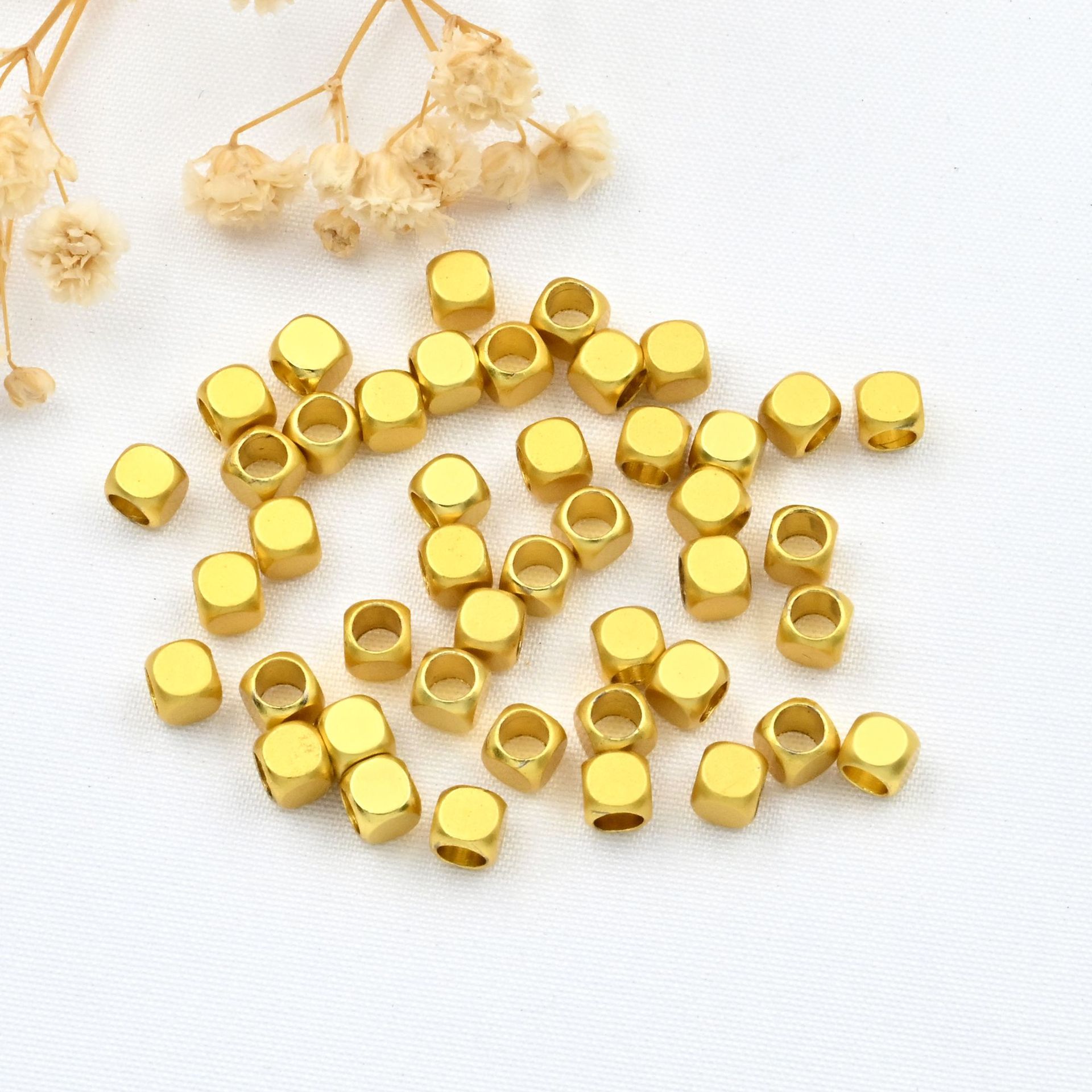 色落ちしない14/18Kゴールド 光沢のある無垢の四角いビーズ DIYジュエリー 手作りビーズ ルースビーズ 四角ビーズ 間隔ビーズ 材料