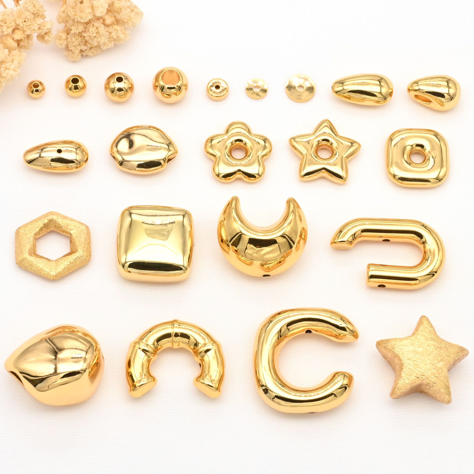 铜镀真金星星月亮隔珠光面转运珠串珠隔片diy水晶手串饰品配饰