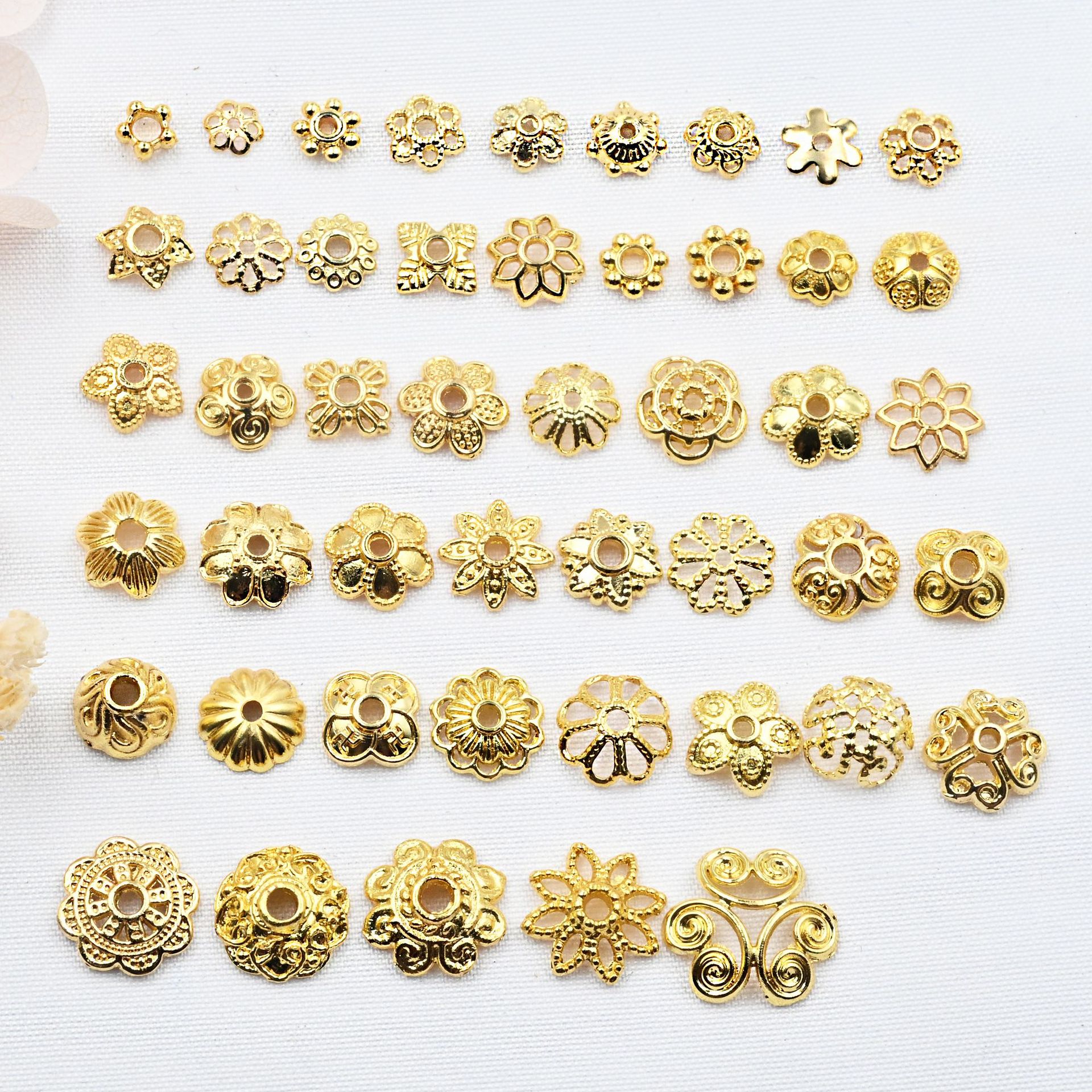 14k包金保色花托手串飾り銅金メッキ透かし花帽diy手作り仕切りビーズ花托材料