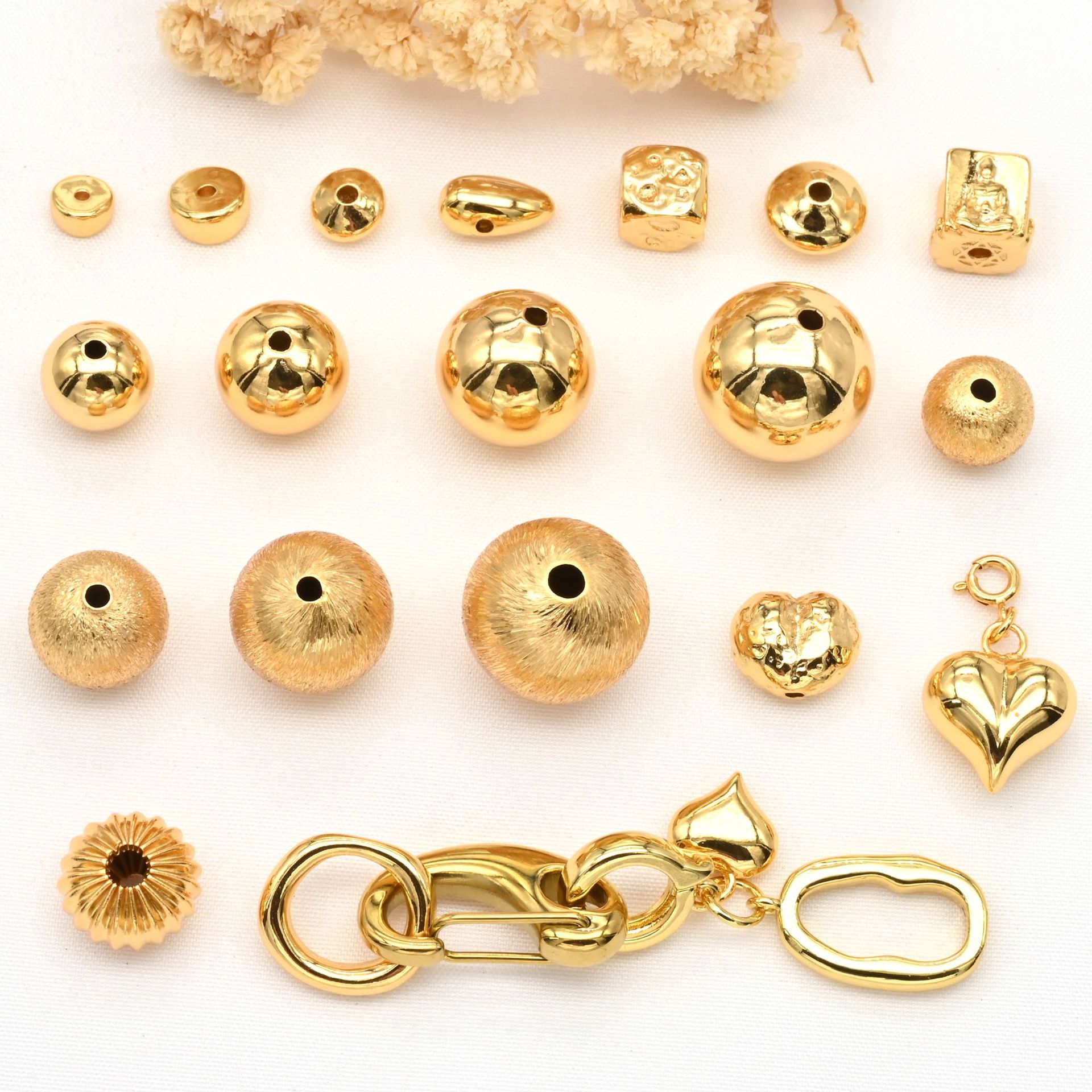 18k14k包金保色珠転運珠隔珠小金珠光沢面実心珠diyアクセサリービーズ散珠