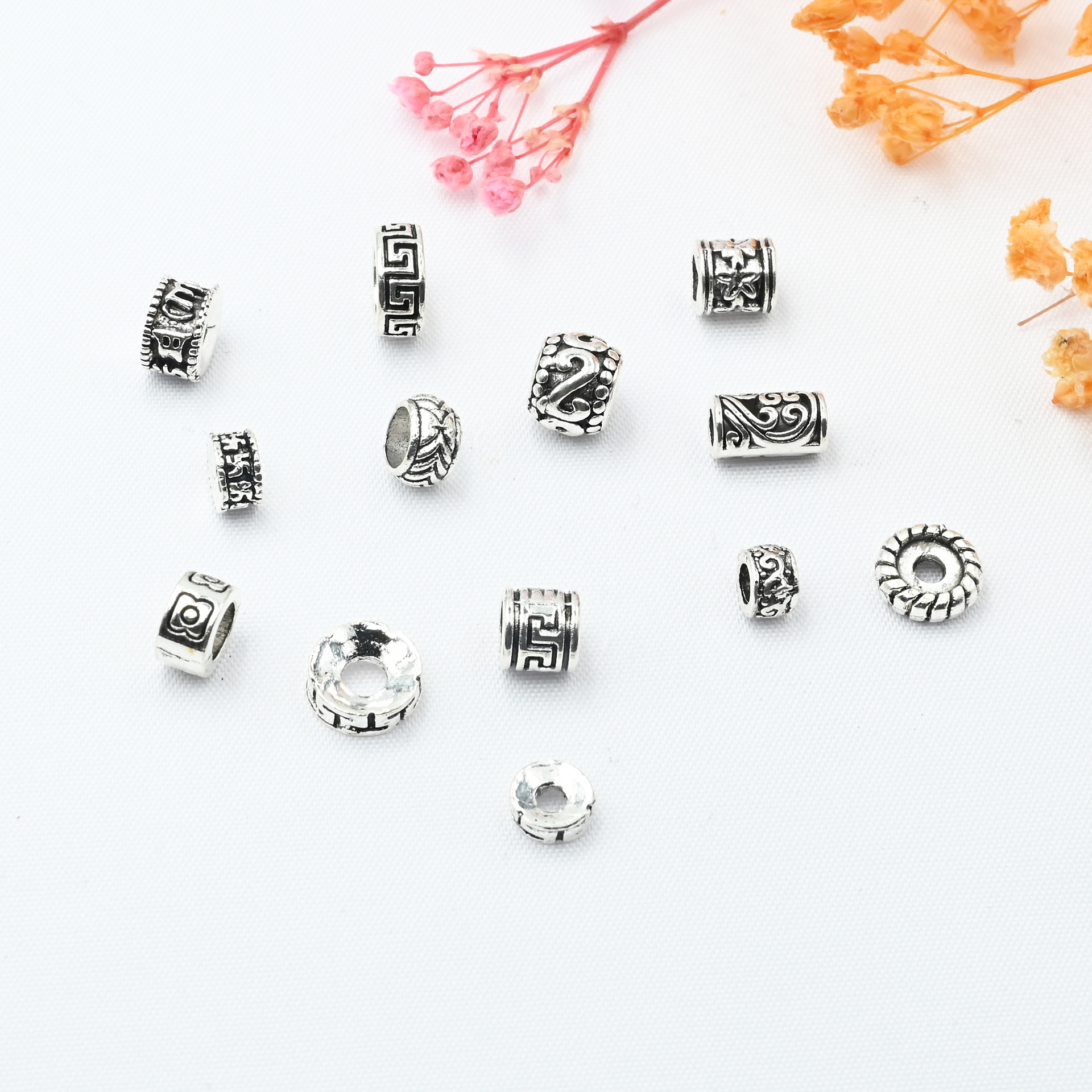 古銀直管珠腰珠隔珠蔵銀レトロ合金珠古銀色アクセサリーアクセサリー隔片仏珠配珠