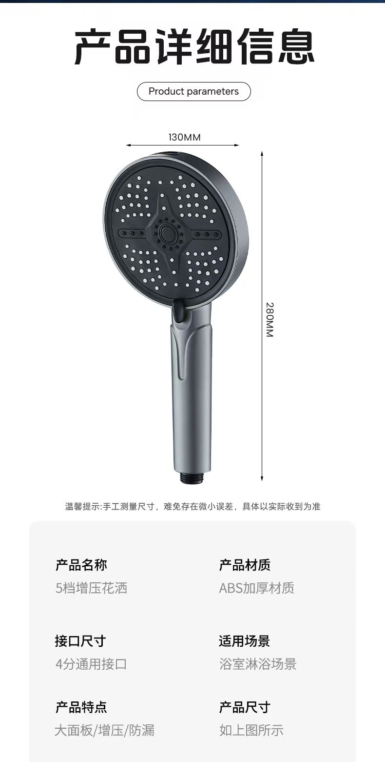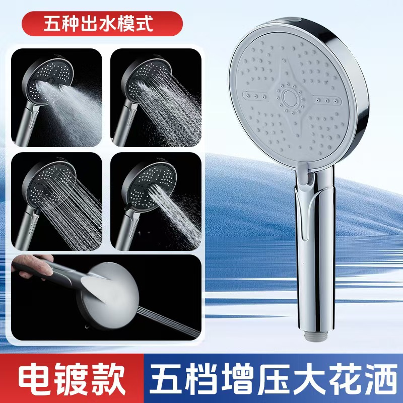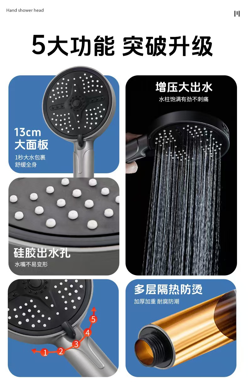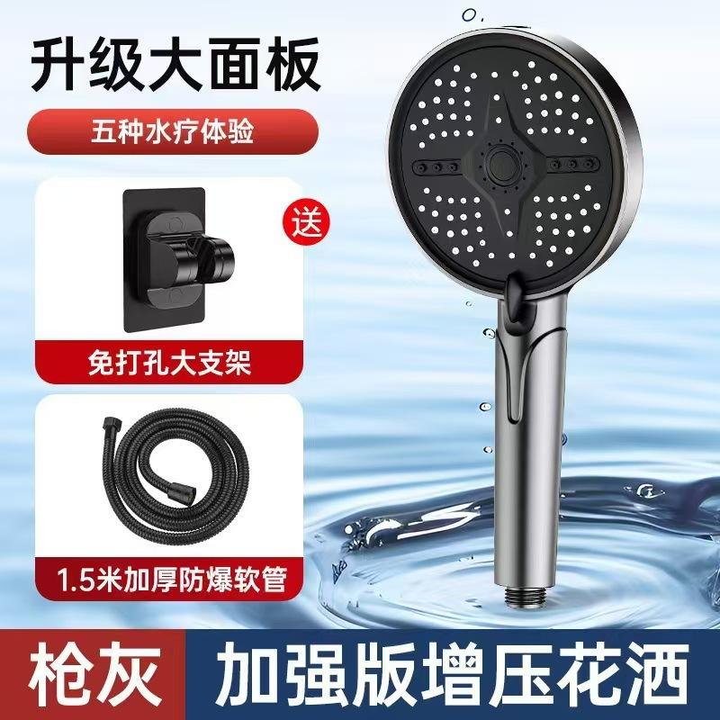 新款跨境大面板增压花洒五档调节喷枪淋浴喷头家用洗澡手持莲蓬头