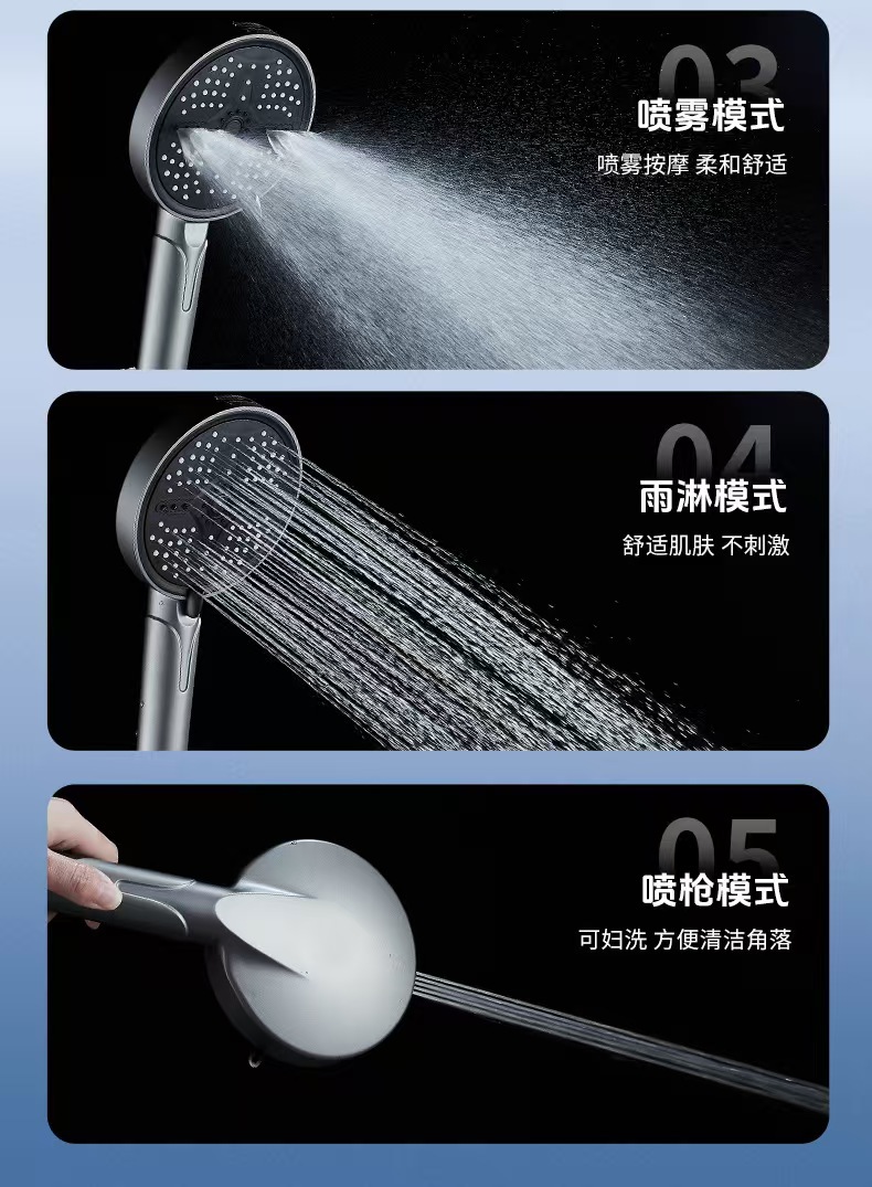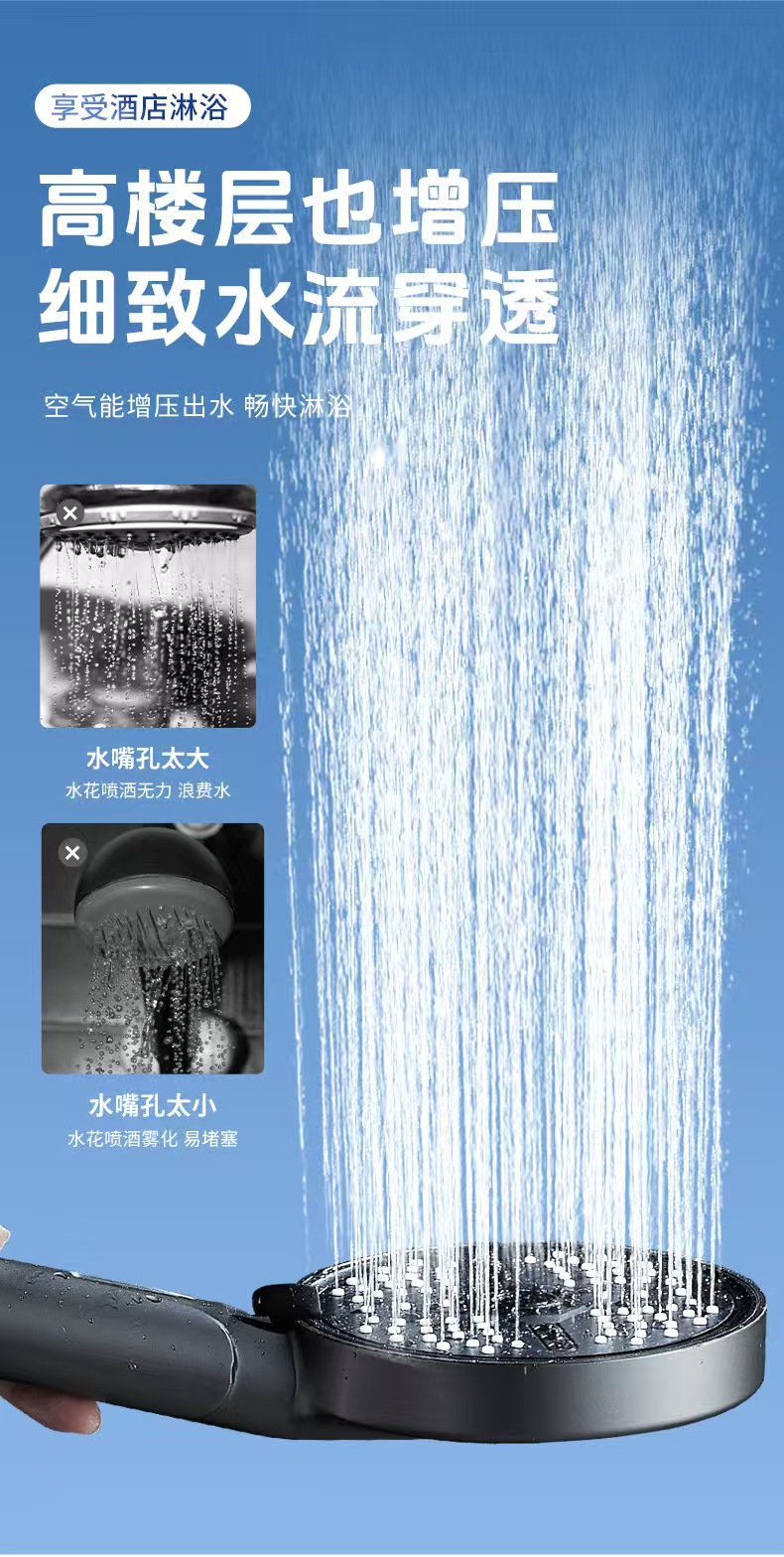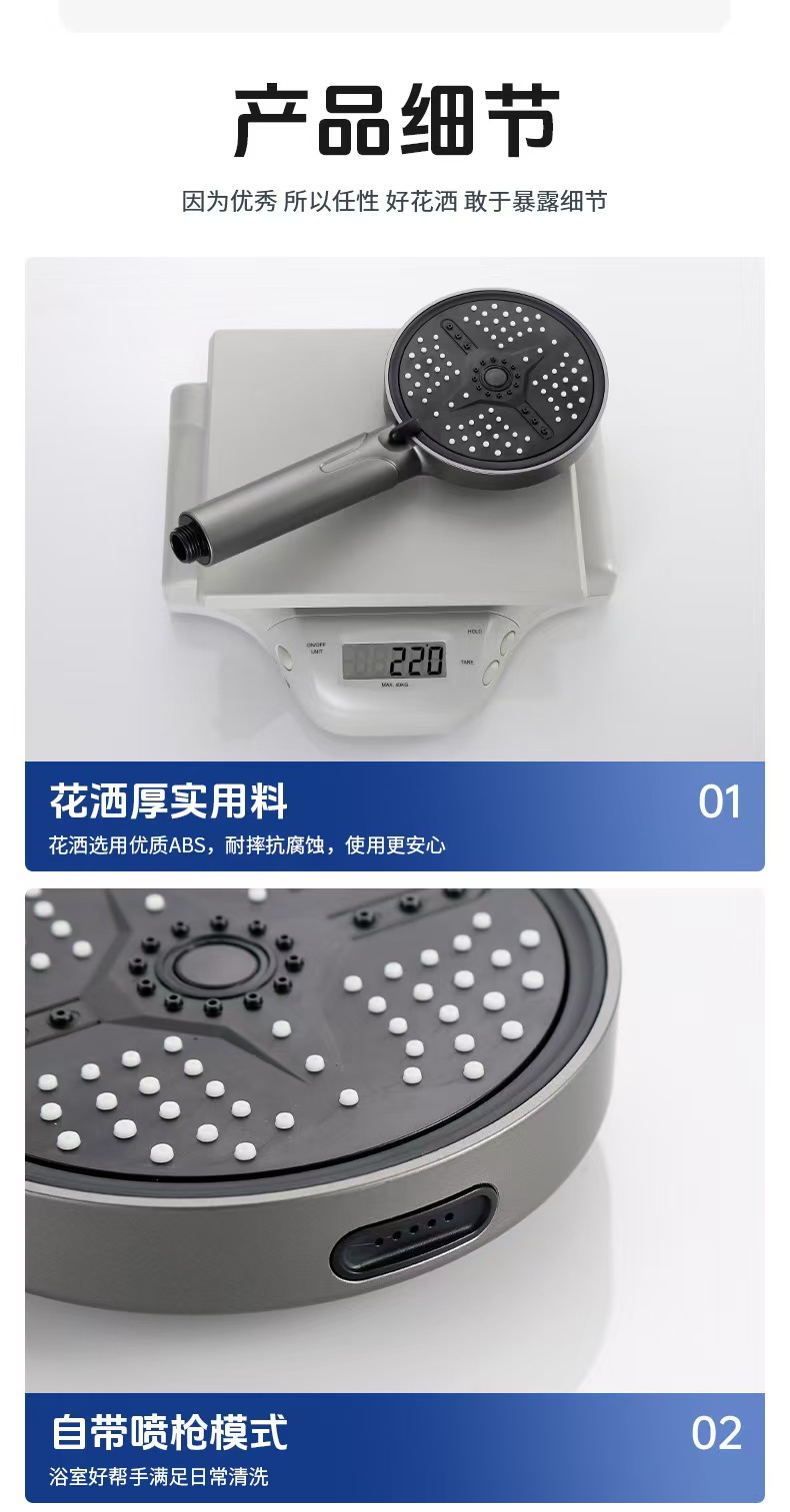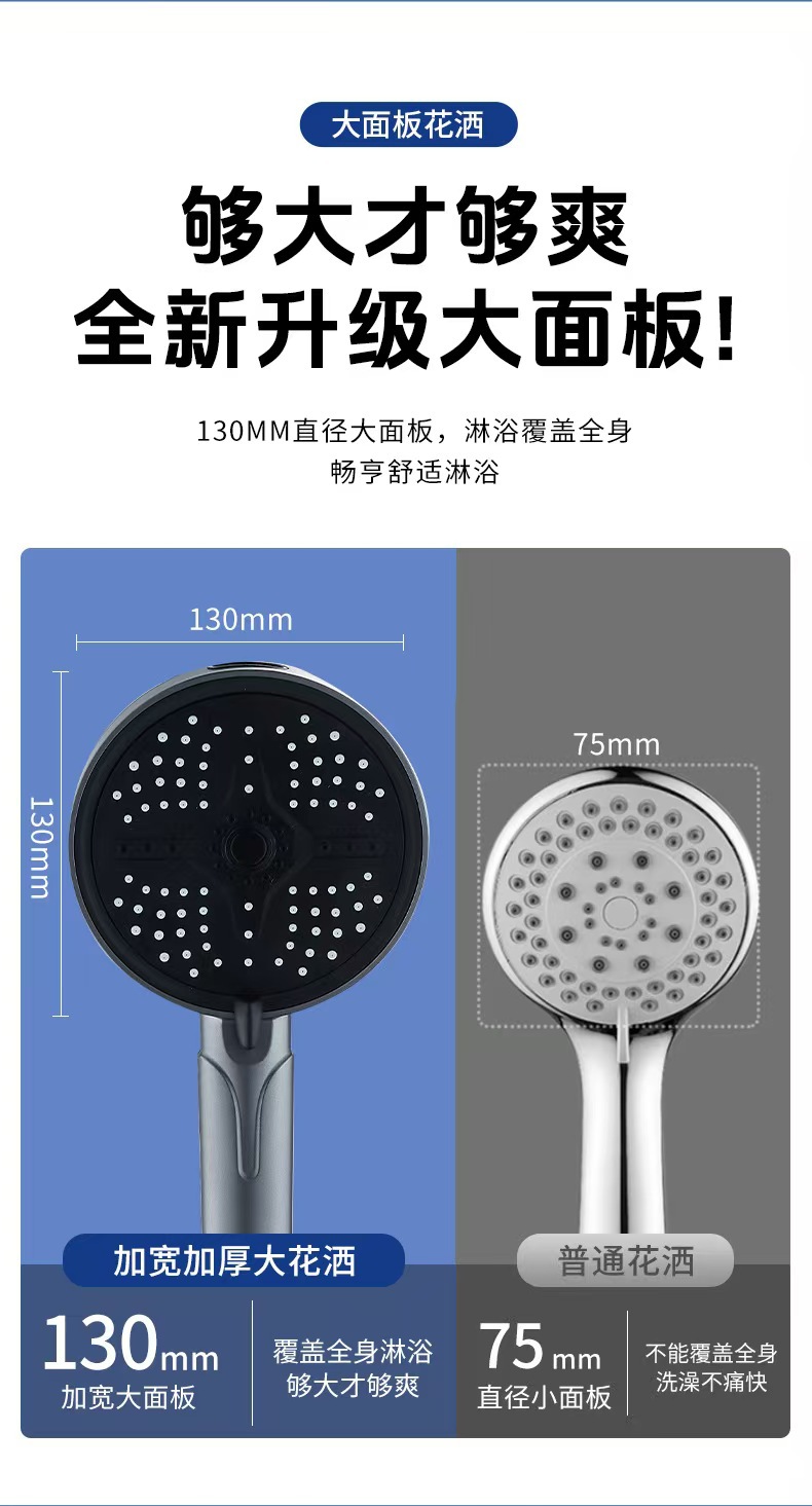 新款跨境大面板增压花洒五档调节喷枪淋浴喷头家用洗澡手持莲蓬头