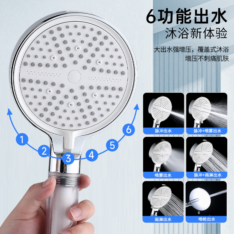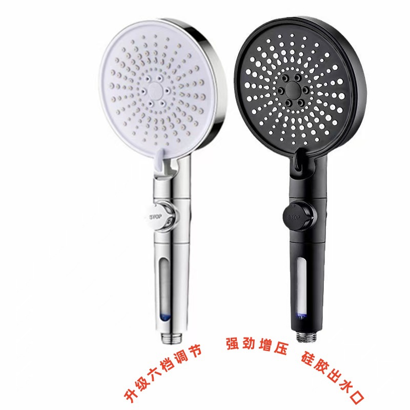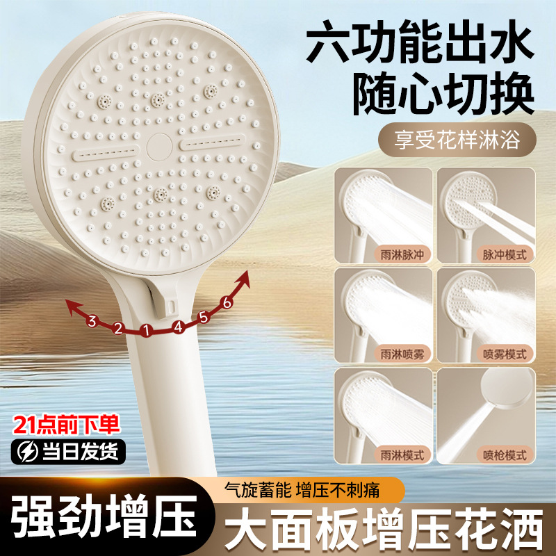 跨境增压花洒喷头六档调节大面板喷枪出水硅胶防堵手持莲蓬头套装