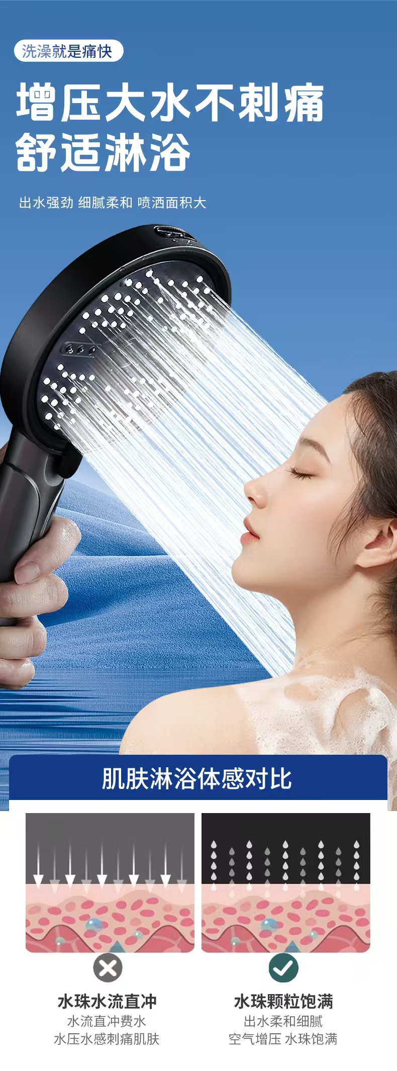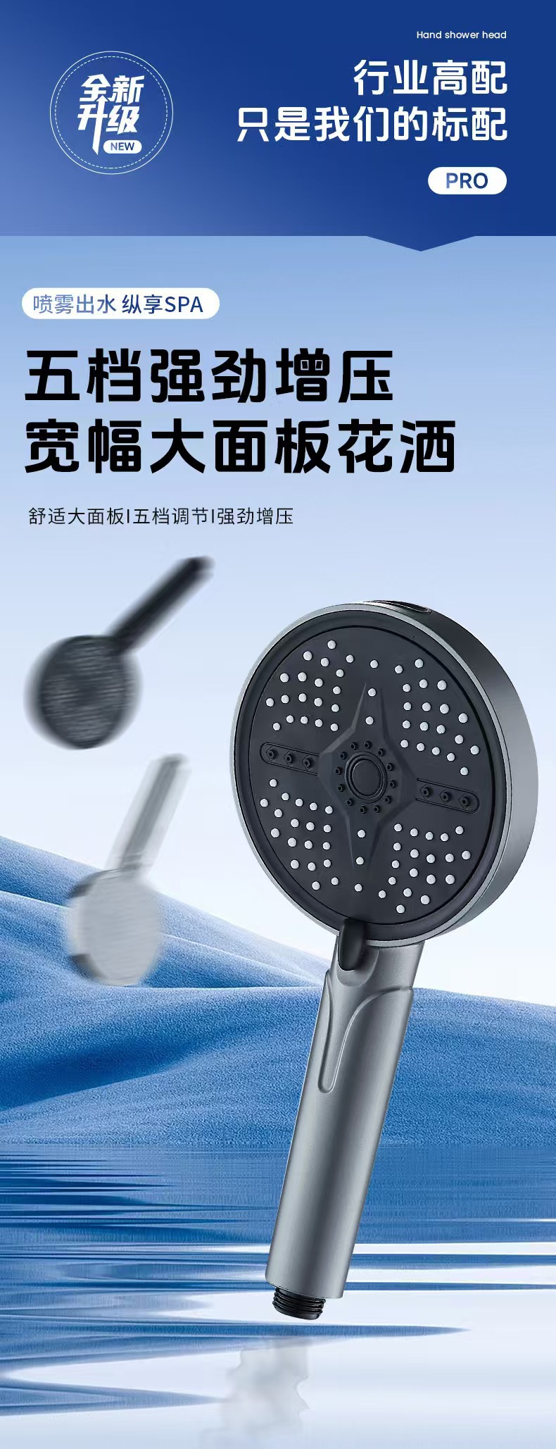 科倍洁同款五档调节大面板增压花洒喷头喷枪大出水洗澡手持淋蓬头