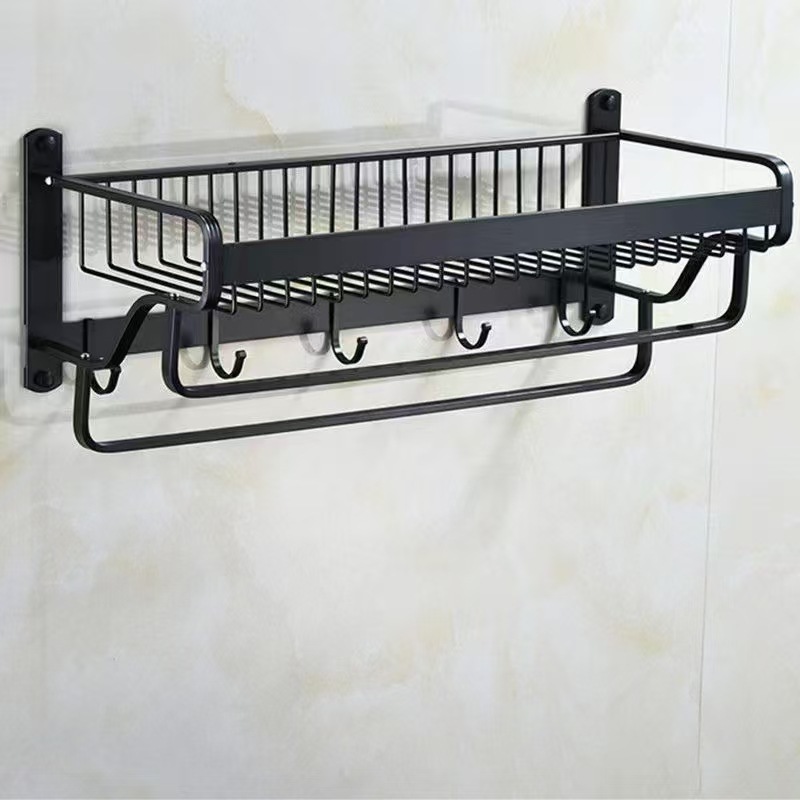 アルミ合金製釘不要タオル掛けネットバスルームフック式壁掛け収納ラック浴室タオル掛け整理棚