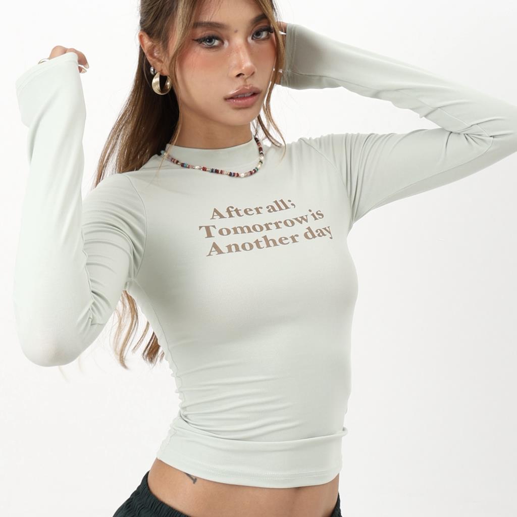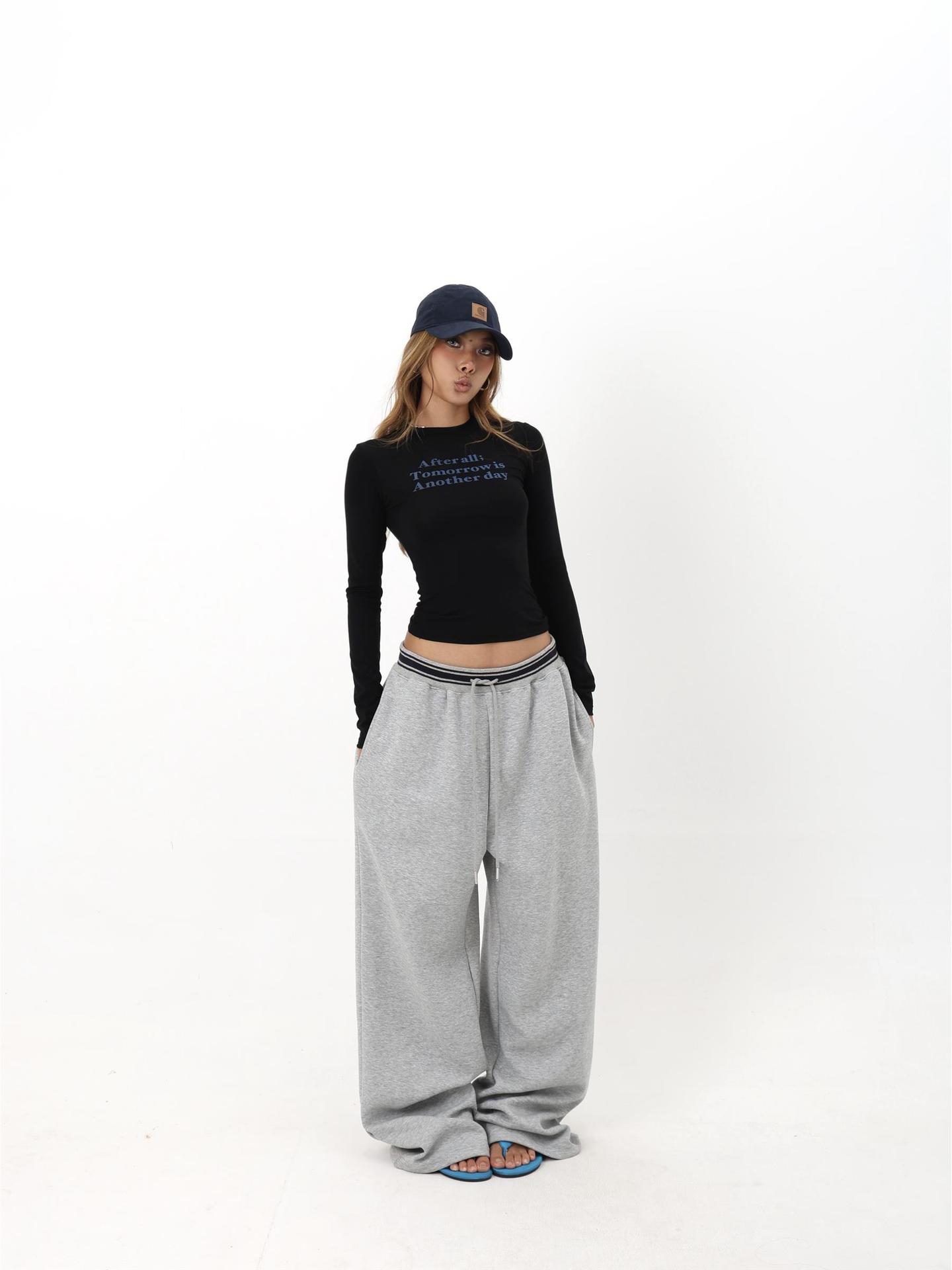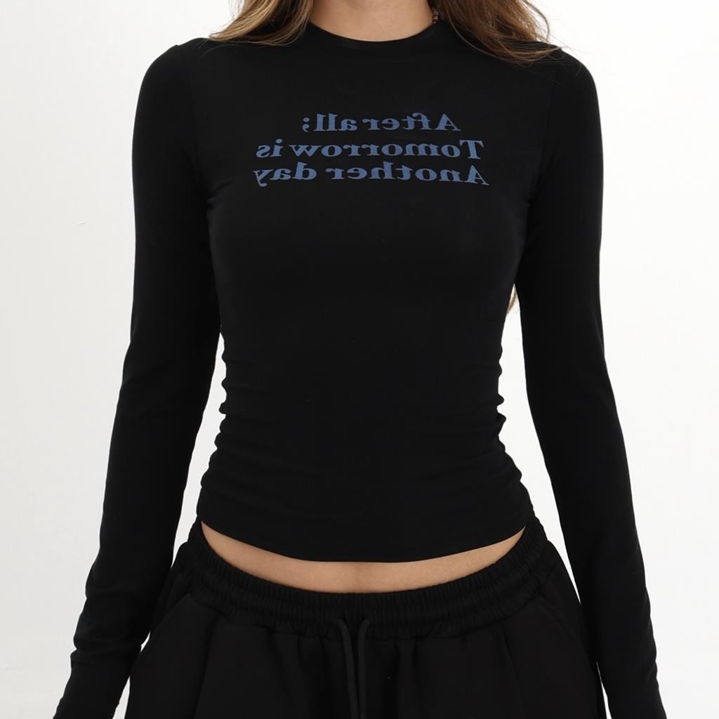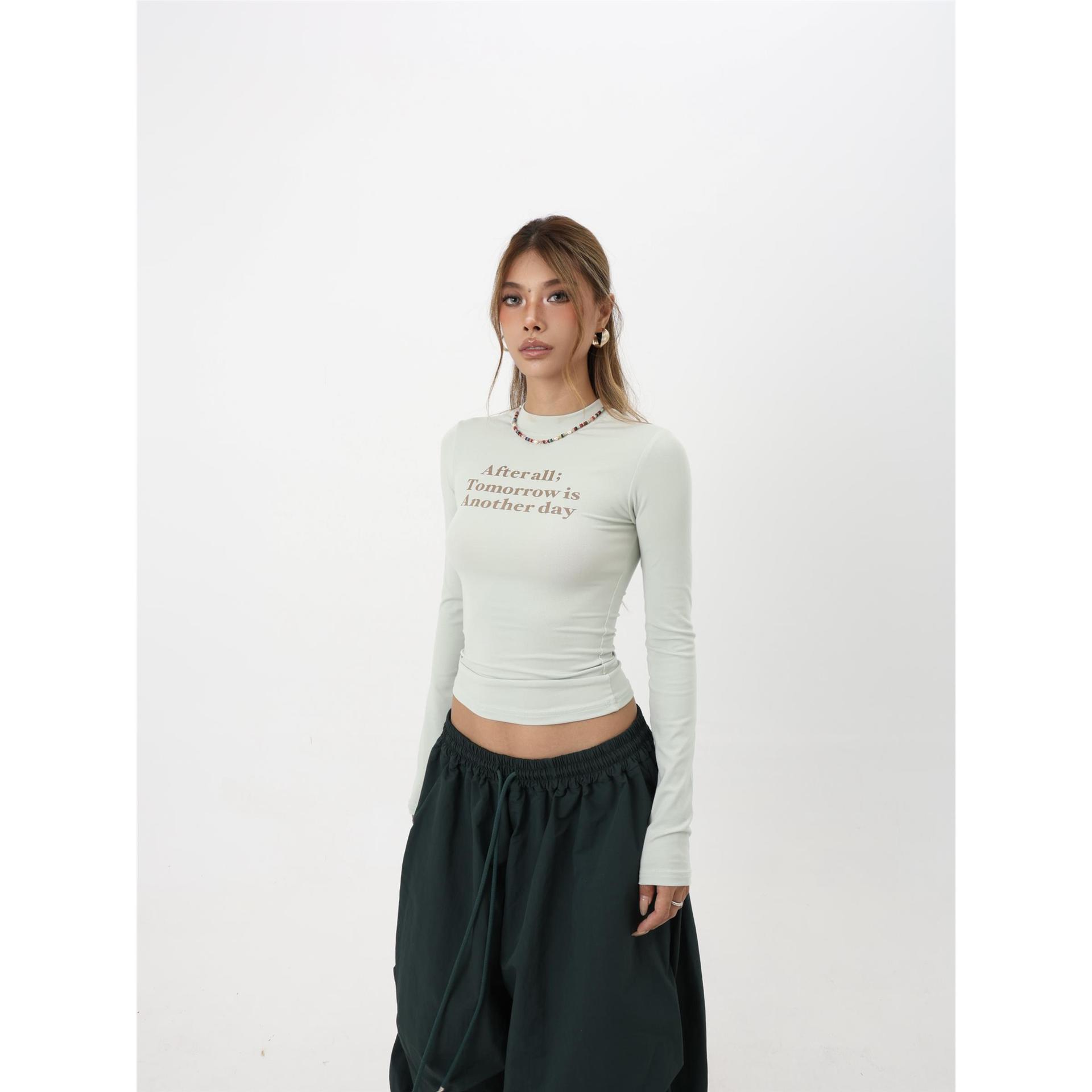 修身字母设计潮小众辣妹印花独特长袖感上衣时尚T恤简约显瘦纯欲