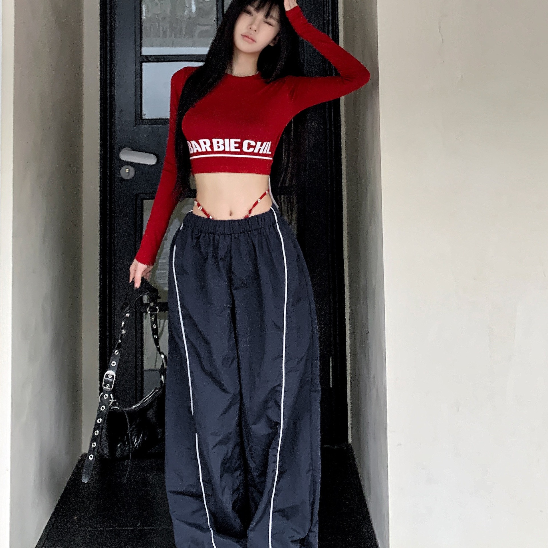 美式辣妹纯欲风修身时尚独特长袖t恤爵士舞欧美短款上衣女秋季款