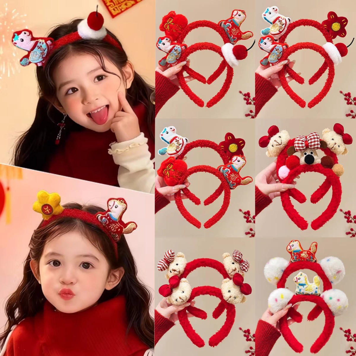 红色发饰喜庆新年发箍女2026新年头箍卡通发捆氛围感装饰头饰摆摊