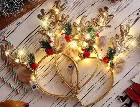 亚马逊新款圣诞发箍发光儿童成人派对装饰舞会装扮卡通鹿角头箍