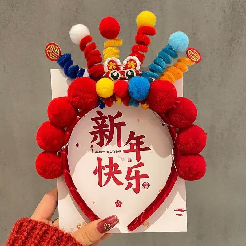 新款喜庆儿童发箍红色新年醒狮发光头箍女童宝宝国风头饰女孩发饰
