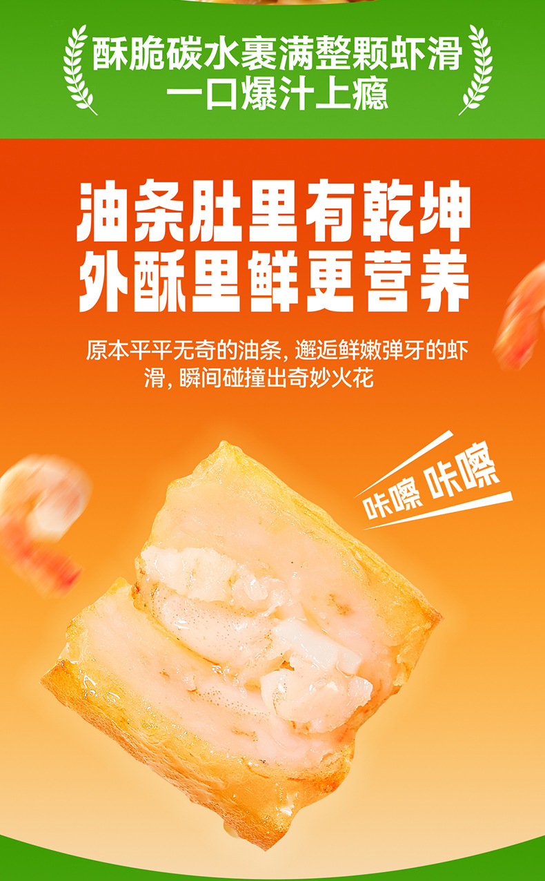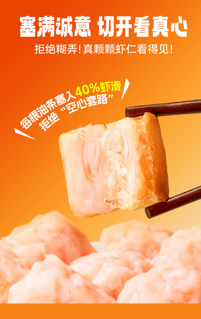 千味央厨大颗粒虾滑馅油条酥脆网红油炸小吃点心半成品